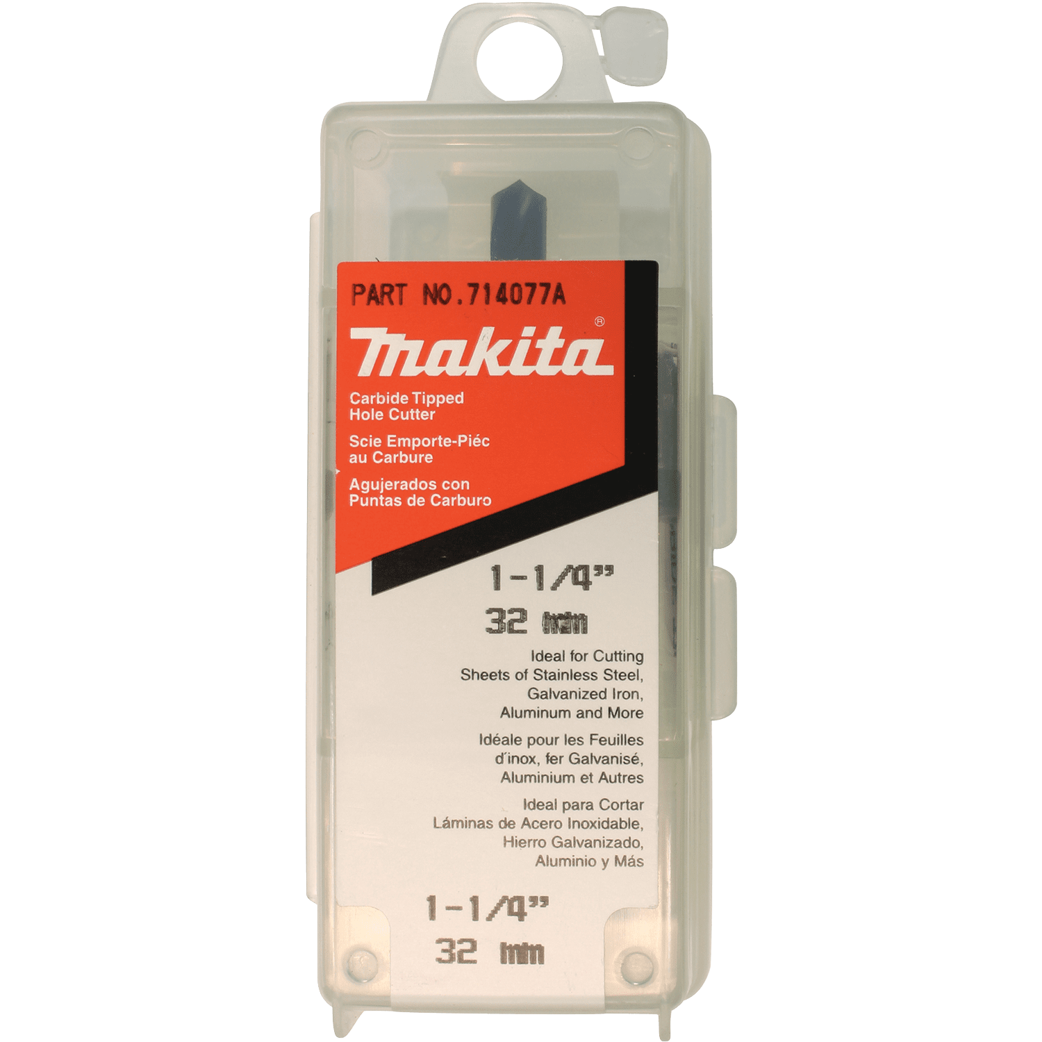 Makita Industrial Carbide-Tipped Holes Saws lasts 15X longer than bi-metal hole saws. They also drill 2.6X faster than bi-metal hole saws. The shoulder design allows drilling up to 1/8" thick while preventing "punching through" the material. Specially designed carbide tips for cutting clean holes. Shoulder engineered to prevent "punching through" the material. Cobalt center tip ideal for use in a variety of metals including stainless steel and aluminum. For drilling holes in metals including aluminum, galvanized iron and stainless steel. Maximum cutting depth of 1/8".