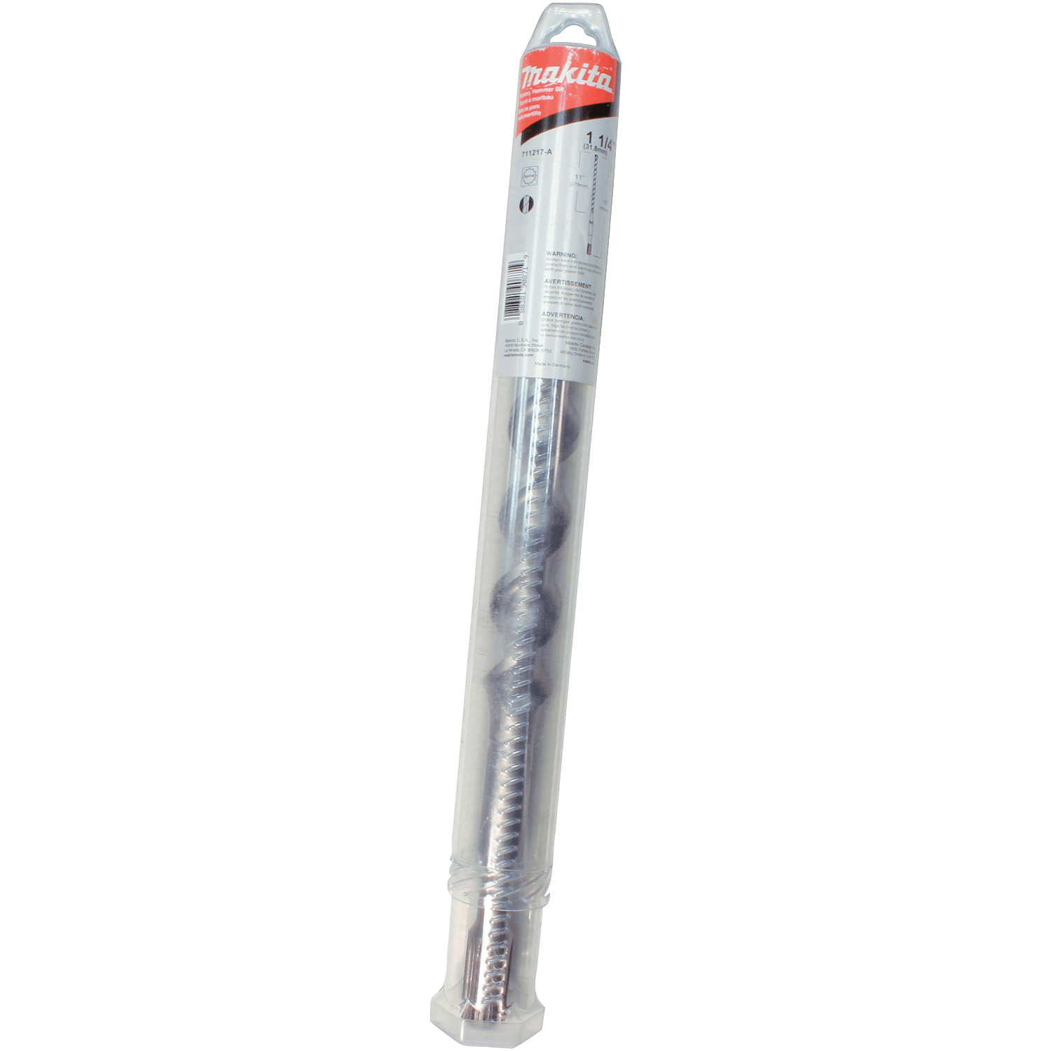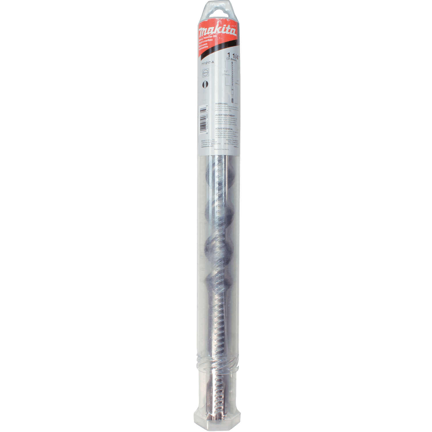 Makita 2-Cutter Spline Bit is designed to work with Rotary Hammers that accept Spline shank bits to drill holes in concrete. The bit features a double flute design for maximum dust removal. Manufactured with high quality tungsten carbide tips with an annealed body for increased duability and long life. 2-cutter design for fast drilling. Symmetrical, double flute design for reduced vibration. Extra strong high quality tungsten carbide tips for long life. Annealed body to reduce tension for greater torque resistance. For drilling holes in reinforced and non-reinforced concrete, block and brick. 11" usable length. For use with Rotary Hammers that accept Spline shank bits.