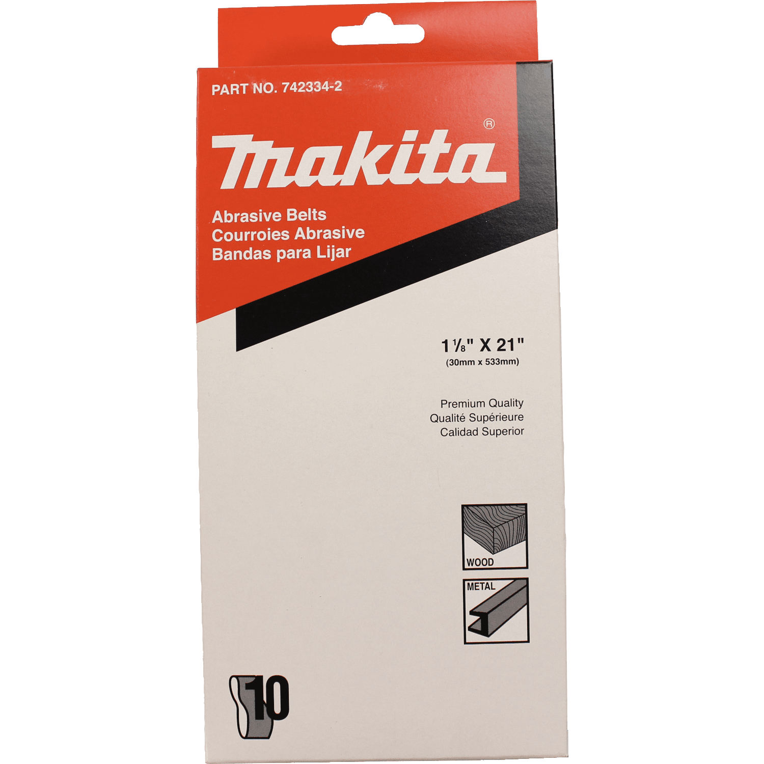 Makita 1-1/8" x 21" Abrasive Belts are ideal for getting into those tight spaces that most cannot. The versatile aluminum-oxide grain abrasive makes these belts ideal for a variety of materials including wood and metal. These Makita abrasive belts will make quick work of removing material including paint. General-purpose aluminum-oxide construction. Ideal for removal of material in tight spaces. For wood, plastics, resins and metals. For use with Makita 1-1/8" x 21" Belt Sander.