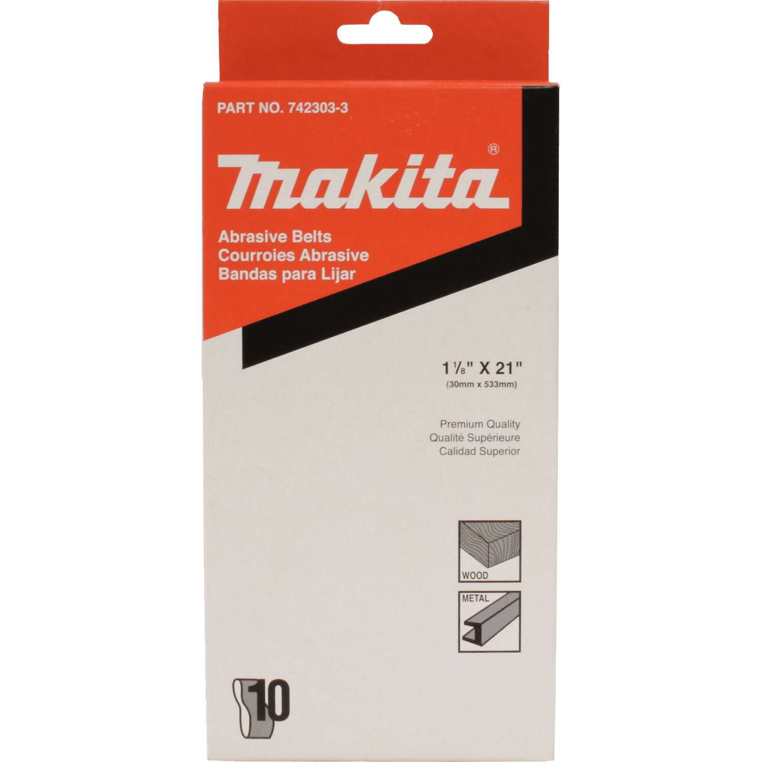 Makita 1-1/8" x 21" Abrasive Belts are ideal for getting into those tight spaces that most cannot. The versatile aluminum-oxide grain abrasive makes these belts ideal for a variety of materials including wood and metal. These Makita abrasive belts will make quick work of removing material including paint. General-purpose aluminum-oxide construction. Ideal for removal of material in tight spaces. For wood, plastics, resins and metals. For use with Makita 1-1/8" x 21" Belt Sander.