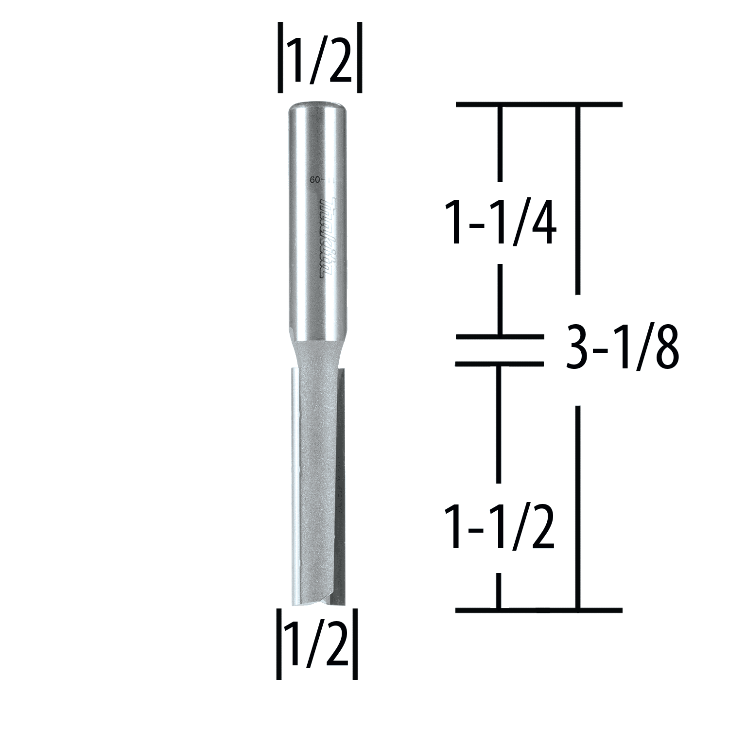 3/4" Straight, 2 Flute, C.T. Router Bit, 1/2" Shank, 1-1/4" Cut