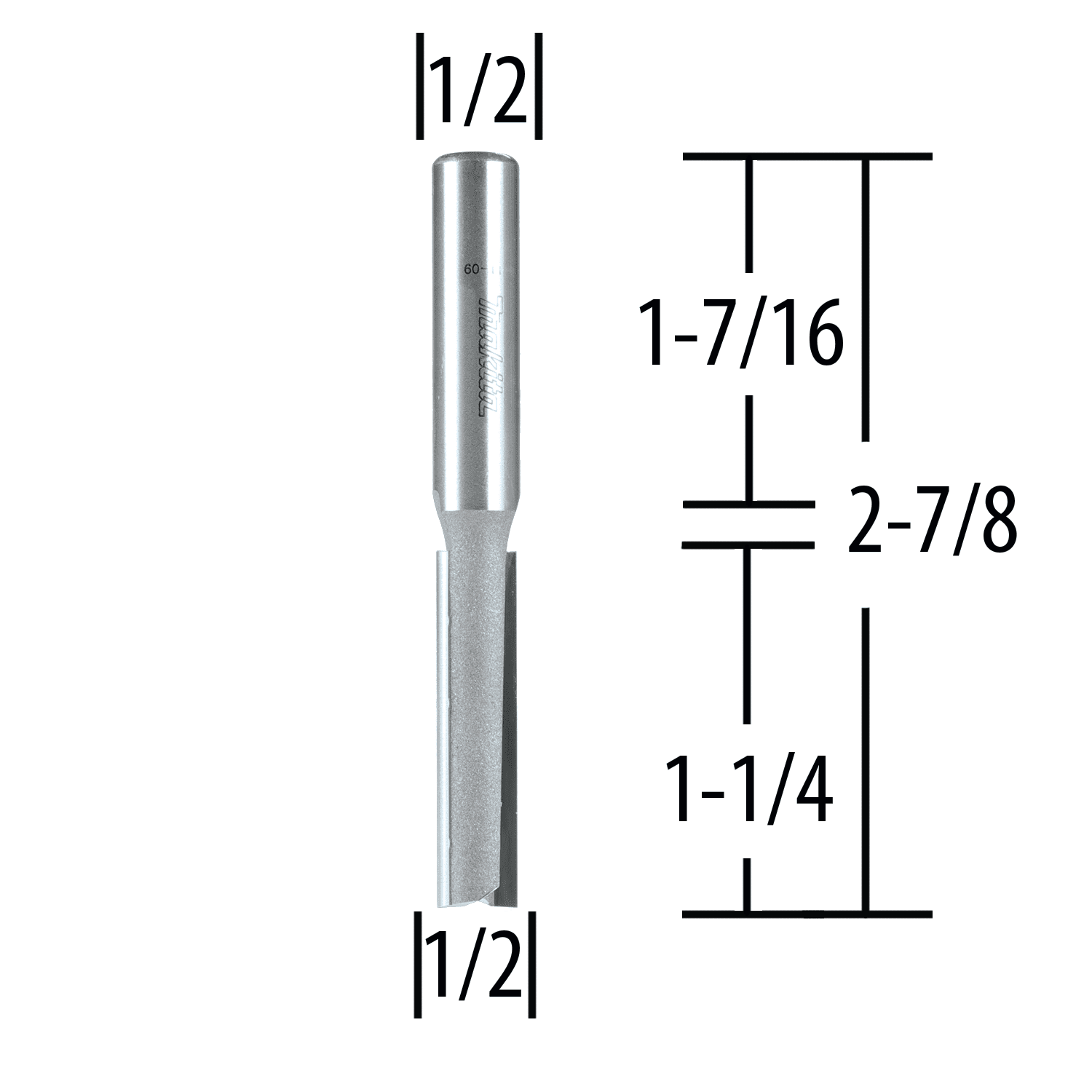 3/4" Straight, 2 Flute, C.T. Router Bit, 1/2" Shank, 1-1/4" Cut