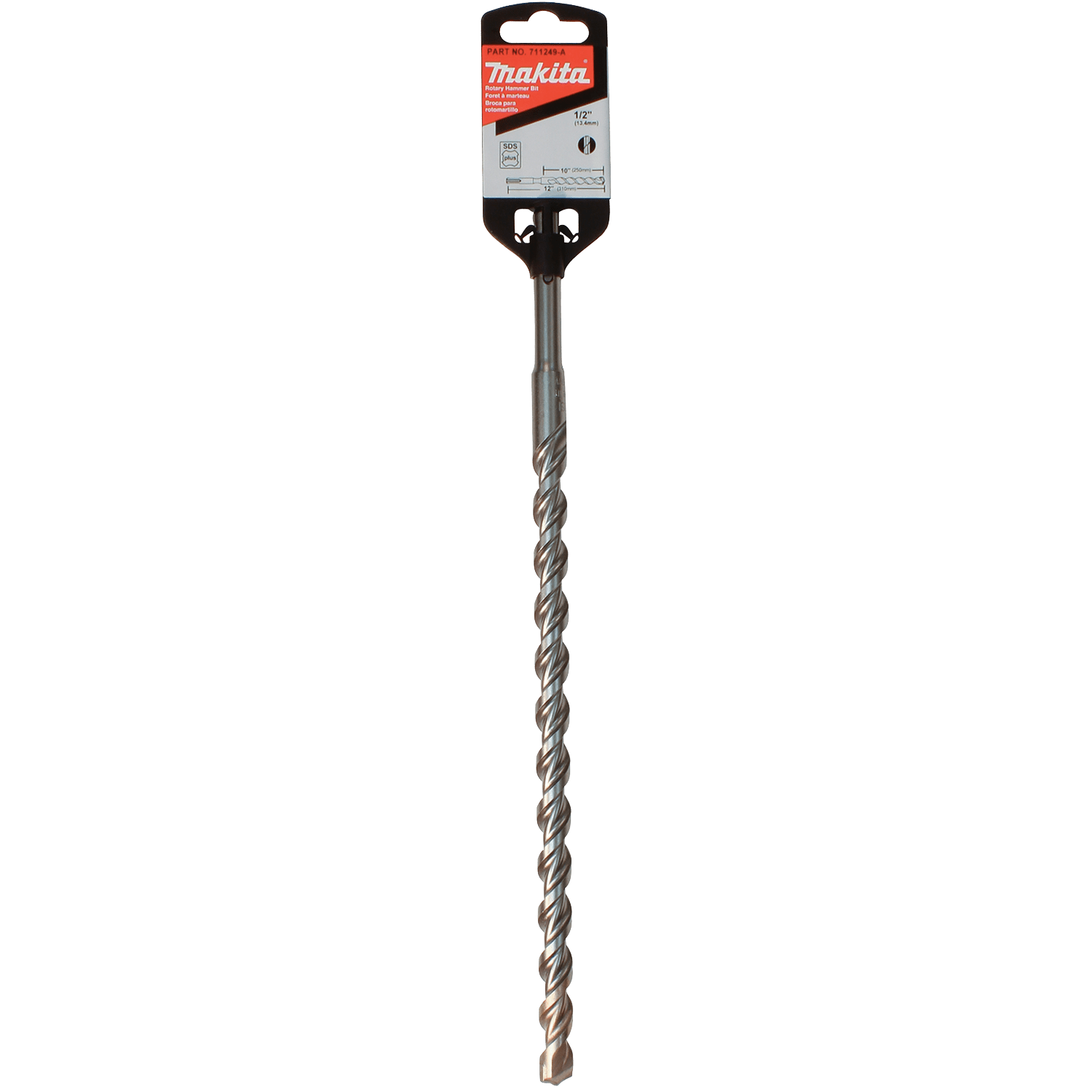 Makita Thruster Style bits are designed with a special carbide tip that penetrates on contact. The advanced flute design makes for faster dust removal and reduced vibration. These bits are designed for drilling holes in a variety of masonry materials including concrete. Thruster Style carbide tip penetrates on contact and plows through rebar. Reinforced flute engineered for reduced vibration and faster dust removal. Dynamic chisel shaped head engineered to keep bit in contact with the material during drilling for faster penetration. Rebar chamfers help keep carbide from chipping. Self-centering tip is ideal for spot drilling. For drilling holes in a variety of masonry materials including concrete. 10" usable length. For use with rotary hammers that accept bits with SDS-PLUS shanks.