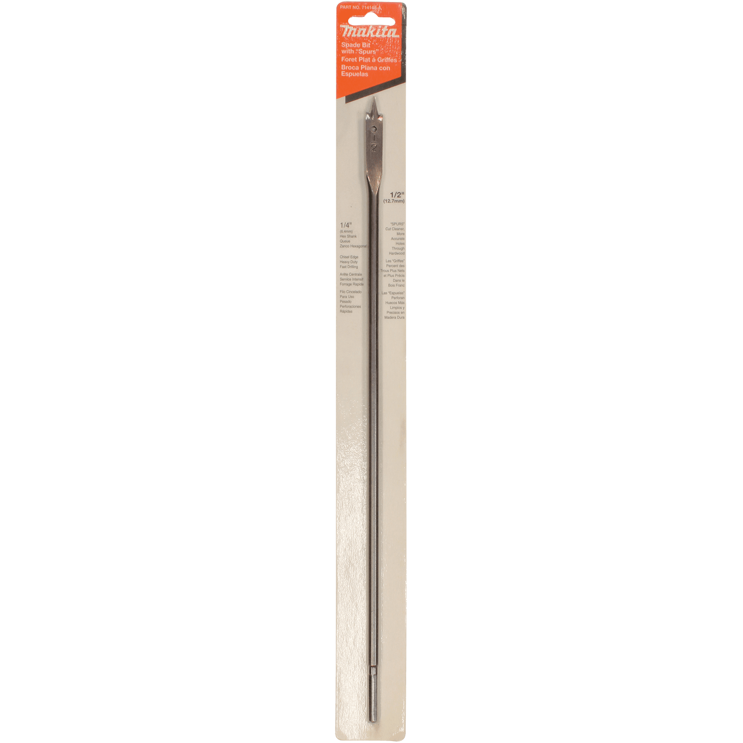 Makita Heavy Duty Spade Bits feature "spurs" that cut cleaner holes in wood. Durable construction allows these bits to hold up to the heaviest of applications. The versatile 1/4" hex shank allows these bits to easily be used in both impact drivers and driver-drills. Designed with "Spurs" for cleaner cuts and more accurate holes in hardwood. The chisel edge design is more positively angled and digs into the wood. Strong and durable for long lasting performance under heavy demands. Ideal for rough boring through wood. Convenient 1/4" hex shank.