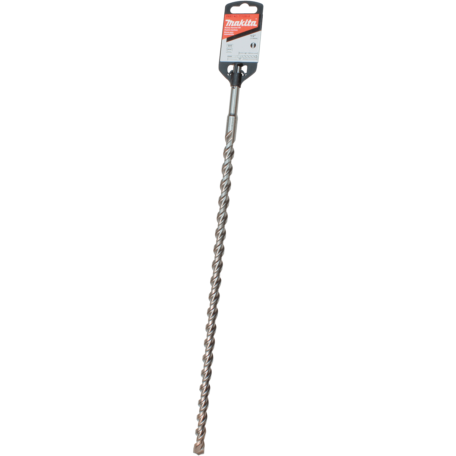 Makita Thruster Style bits are designed with a special carbide tip that penetrates on contact. The advanced flute design makes for faster dust removal and reduced vibration. These bits are designed for drilling holes in a variety of masonry materials including concrete. Thruster Style carbide tip penetrates on contact and plows through rebar. Reinforced flute engineered for reduced vibration and faster dust removal. Dynamic chisel shaped head engineered to keep bit in contact with the material during drilling for faster penetration. Rebar chamfers help keep carbide from chipping. Self-centering tip is ideal for spot drilling. For drilling holes in a variety of masonry materials including concrete. 16" usable length. For use with rotary hammers that accept bits with SDS-PLUS shanks.