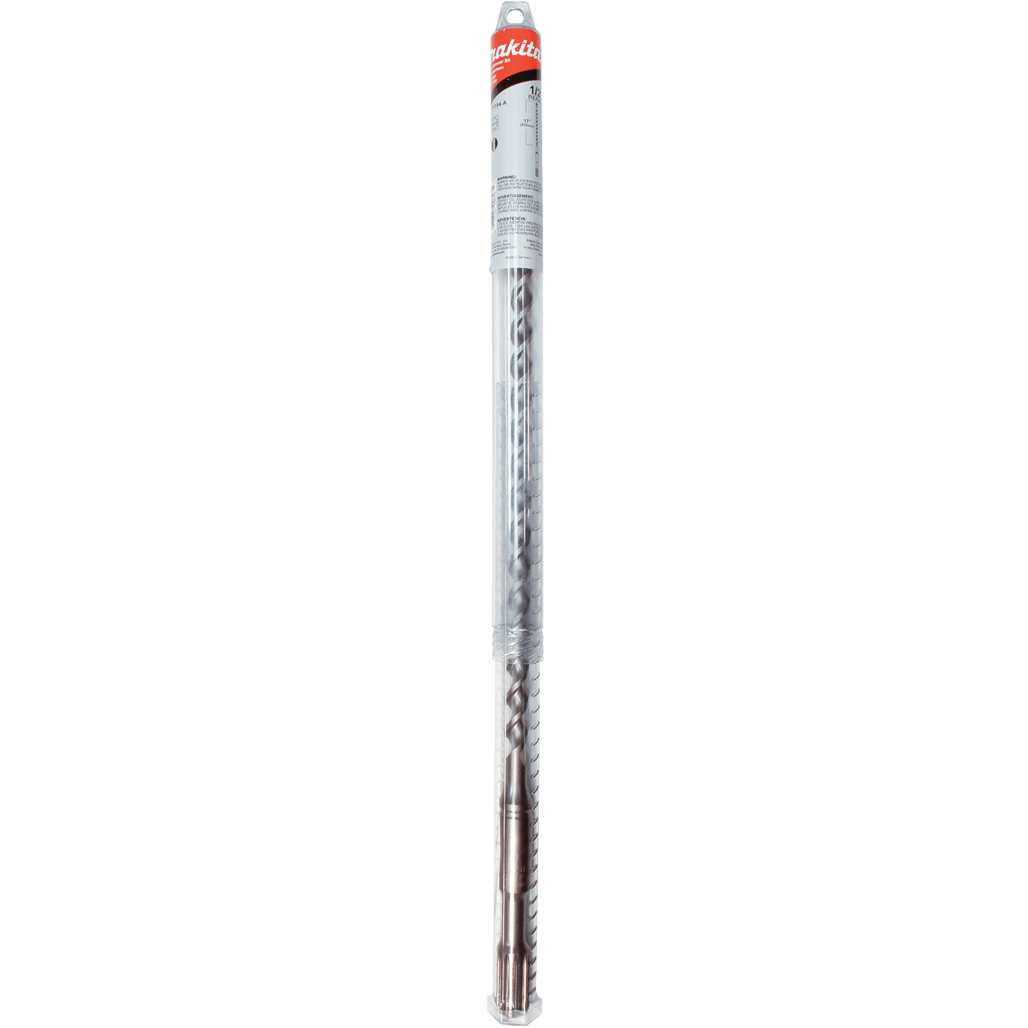 Makita 2-Cutter Spline Bit is designed to work with Rotary Hammers that accept Spline shank bits to drill holes in concrete. The bit features a double flute design for maximum dust removal. Manufactured with high quality tungsten carbide tips with an annealed body for increased duability and long life. 2-cutter design for fast drilling. Symmetrical, double flute design for reduced vibration. Extra strong high quality tungsten carbide tips for long life. Annealed body to reduce tension for greater torque resistance. For drilling holes in reinforced and non-reinforced concrete, block and brick. 17" usable length. For use with Rotary Hammers that accept Spline shank bits.