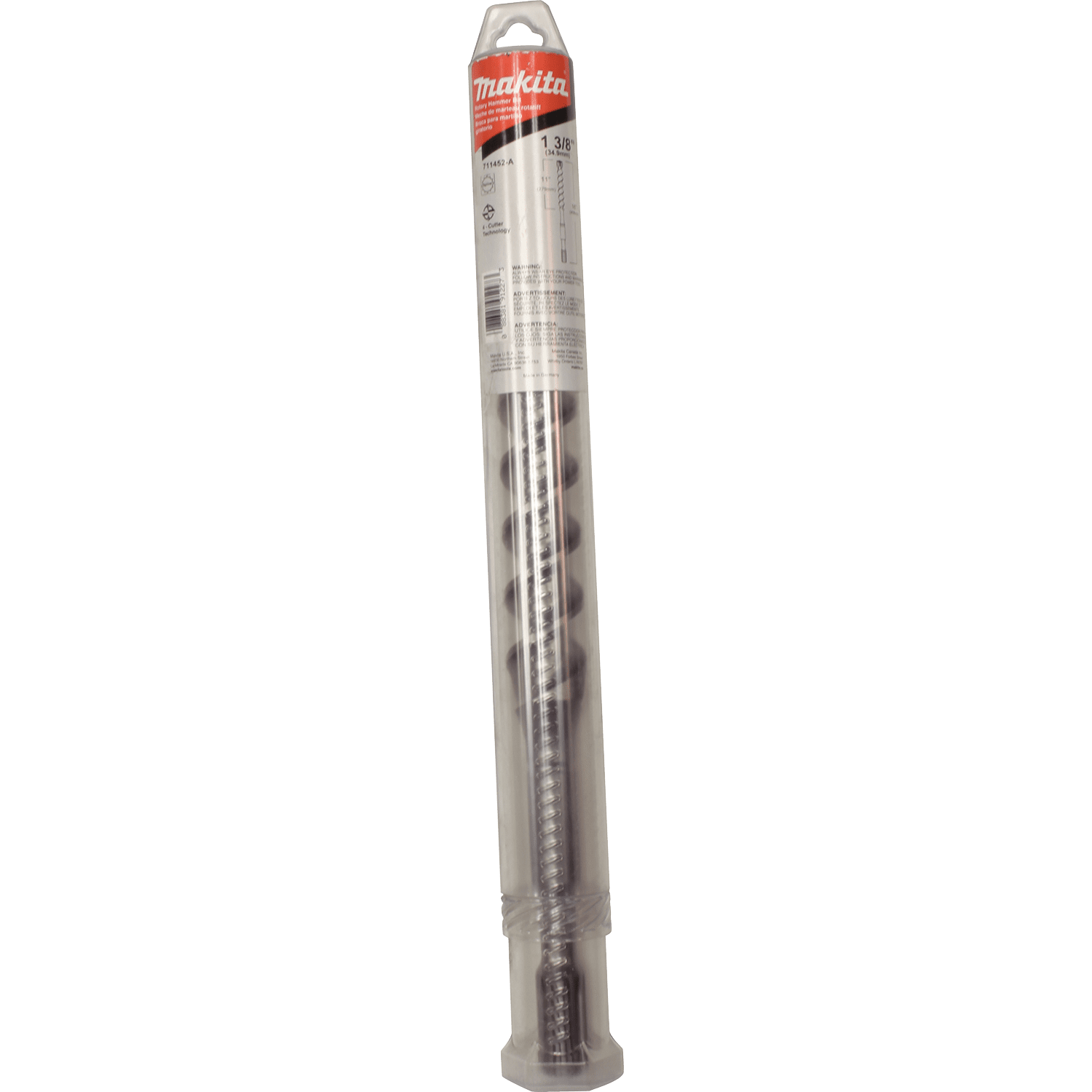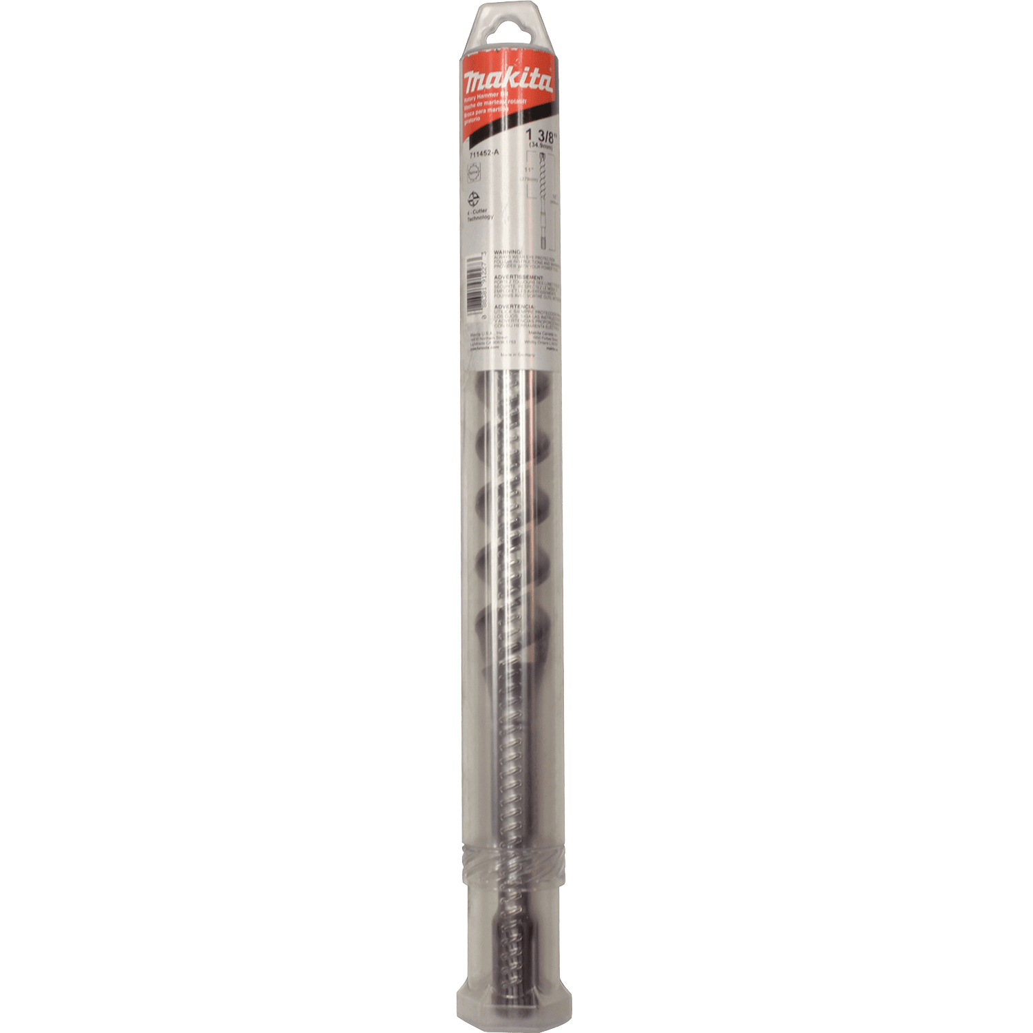 Makita 4-Cutter Spline Bit is designed to work with Rotary Hammers that accept Spline shank bits to drill holes in concrete. The 4-cutter technology combines with the central guiding action for efficientand accurate drilling. The high quality steel and special impact grade carbide make for added durability and long life. 4-cutter technology for reduced friction and rapid dust removal. Central guiding action for accurate holes. Centering tip features a more aggressive design for faster hole starting. Engineered for reduced vibration. Wear marking on primary cutter indicates bit wear. Made of the highest quality chrome-nickel-molybdenum steel. For drilling holes in concrete; 11" usable length. For use with Rotary Hammers that accept Spline shank bits.