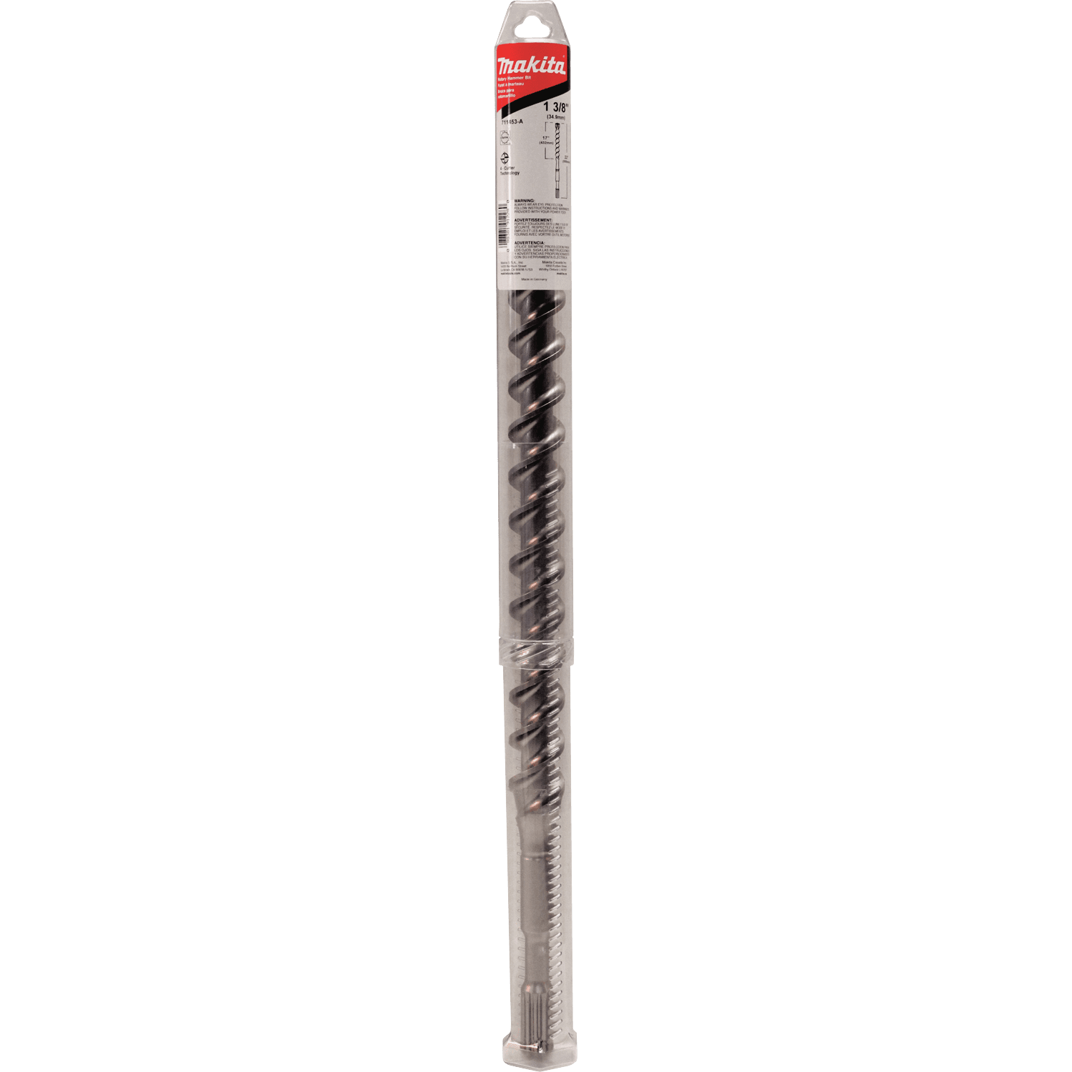 Makita 4-Cutter Spline Bit is designed to work with Rotary Hammers that accept Spline shank bits to drill holes in concrete. The 4-cutter technology combines with the central guiding action for efficientand accurate drilling. The high quality steel and special impact grade carbide make for added durability and long life. 4-cutter technology for reduced friction and rapid dust removal. Central guiding action for accurate holes. Centering tip features a more aggressive design for faster hole starting. Engineered for reduced vibration. Wear marking on primary cutter indicates bit wear. Made of the highest quality chrome-nickel-molybdenum steel. For drilling holes in concrete; 17" usable length. For use with Rotary Hammers that accept Spline shank bits.