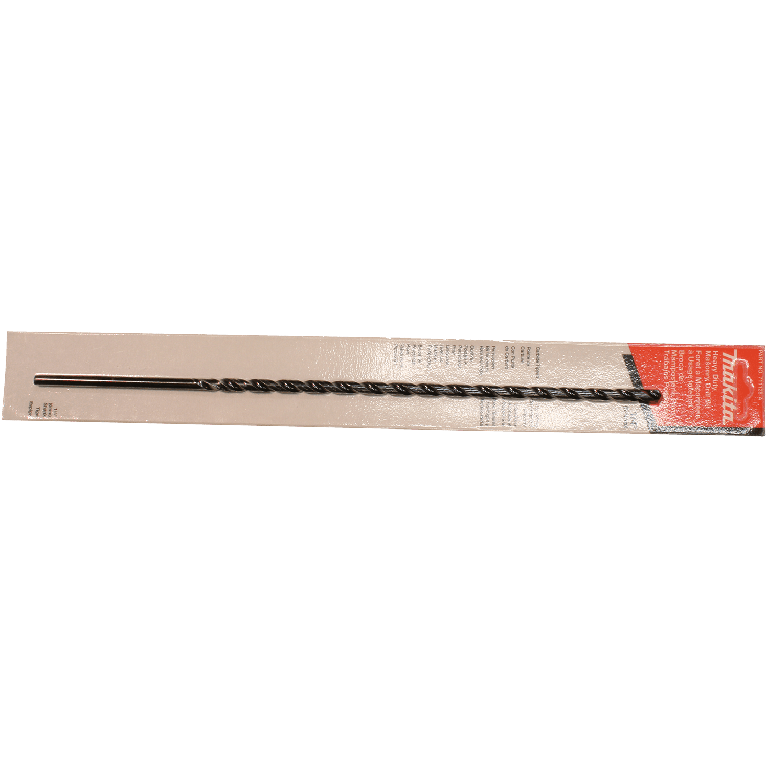 Makita Percussion Bits are designed for use in a variety of masonry materials. They feature carbide tips for longer bit life. The wide flute design allows for rapid dust removal. Carbide tipped for longer bit life. Wide flutes for rapid dust removal. Resharpenable for extended bit life. For use in corded and cordless hammer drills for drilling holes in masonry materials.