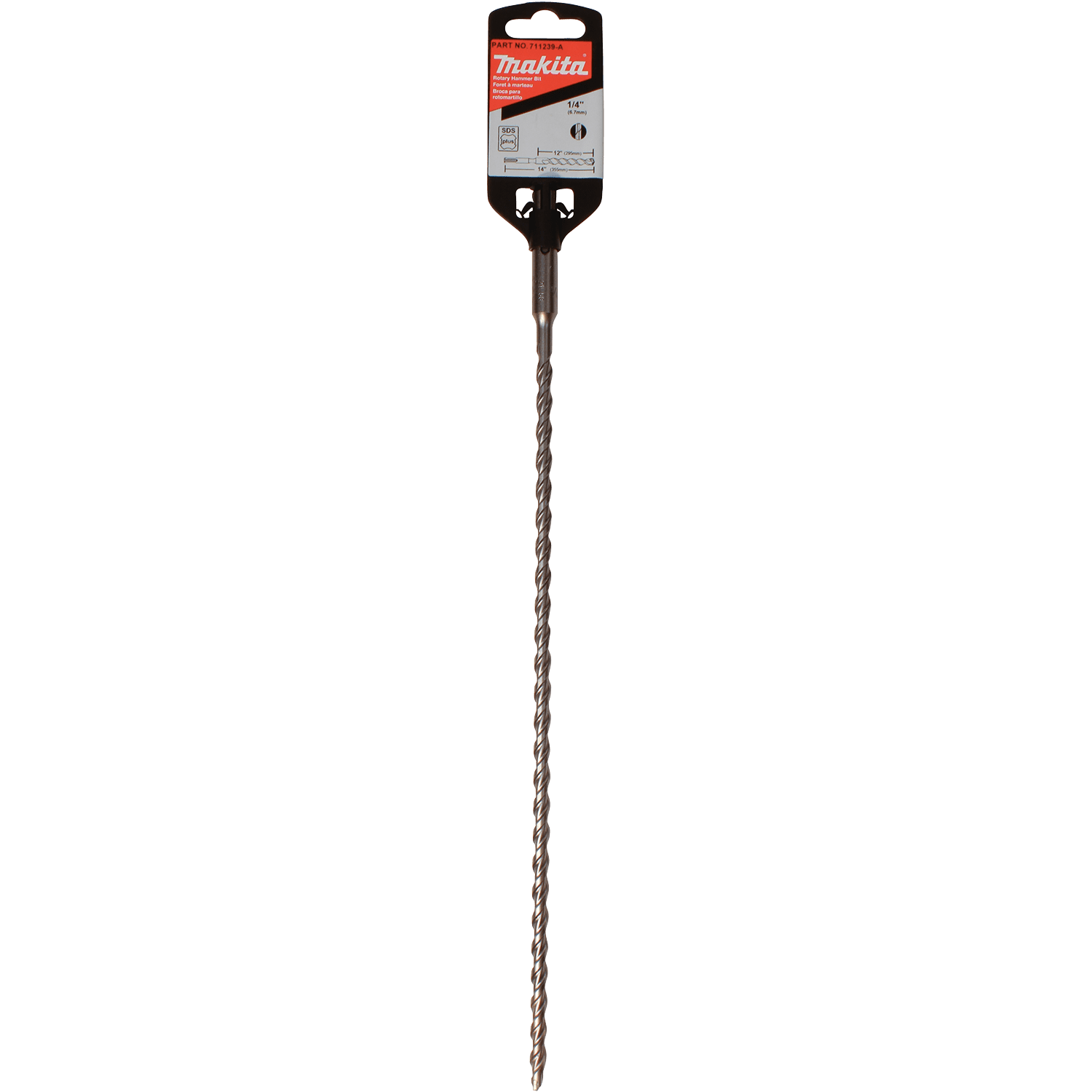 Makita Thruster® SDS-PLUS Rotary Hammer Bit is designed to be used with rotary hammers for drilling holes in concrete. The Thruster Style carbide tip and chamfers allow this bit to handle rebar with ease. Manufactured from high quality steel for added durability and long life. Thruster Style carbide tip penetrates on contact and plows through rebar. Reinforced flute engineered for reduced vibration and faster dust removal. Dynamic chisel shaped head engineered to keep bit in contact with the material during drilling for faster penetration. Rebar chamfers help keep carbide from chipping. Self-centering tip is ideal for spot drilling. For drilling holes in concrete. 12" usable length. For use with rotary hammers that accept bits with SDS-PLUS shanks.
