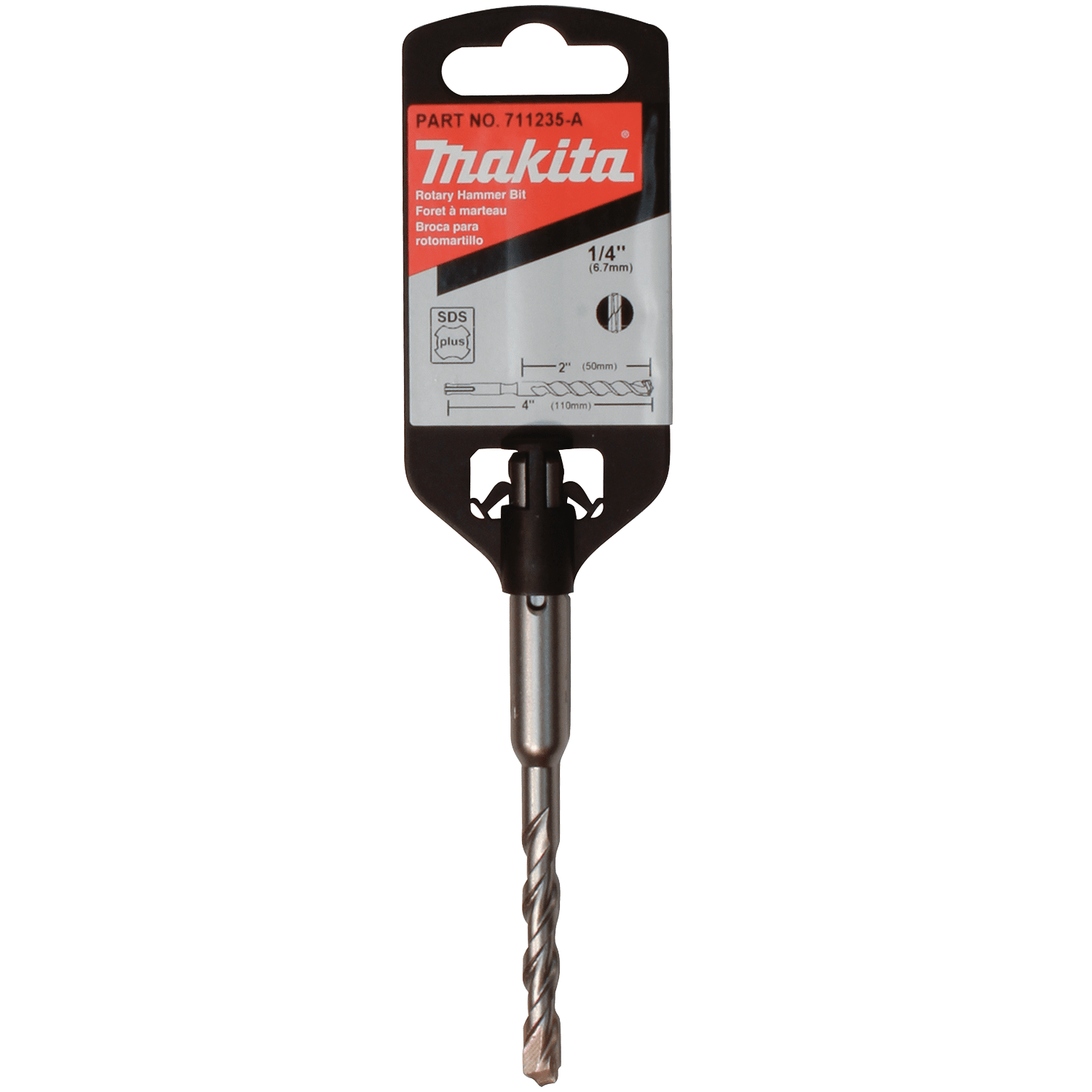 Makita Thruster Style bits are designed with a special carbide tip that penetrates on contact. The advanced flute design makes for faster dust removal and reduced vibration. These bits are designed for drilling holes in a variety of masonry materials including concrete. Thruster Style carbide tip penetrates on contact and plows through rebar. Reinforced flute engineered for reduced vibration and faster dust removal. Dynamic chisel shaped head engineered to keep bit in contact with the material during drilling for faster penetration. Rebar chamfers help keep carbide from chipping. Self-centering tip is ideal for spot drilling. For drilling holes in a variety of masonry materials including concrete. 2" usable length. For use with rotary hammers that accept bits with SDS-PLUS shanks.