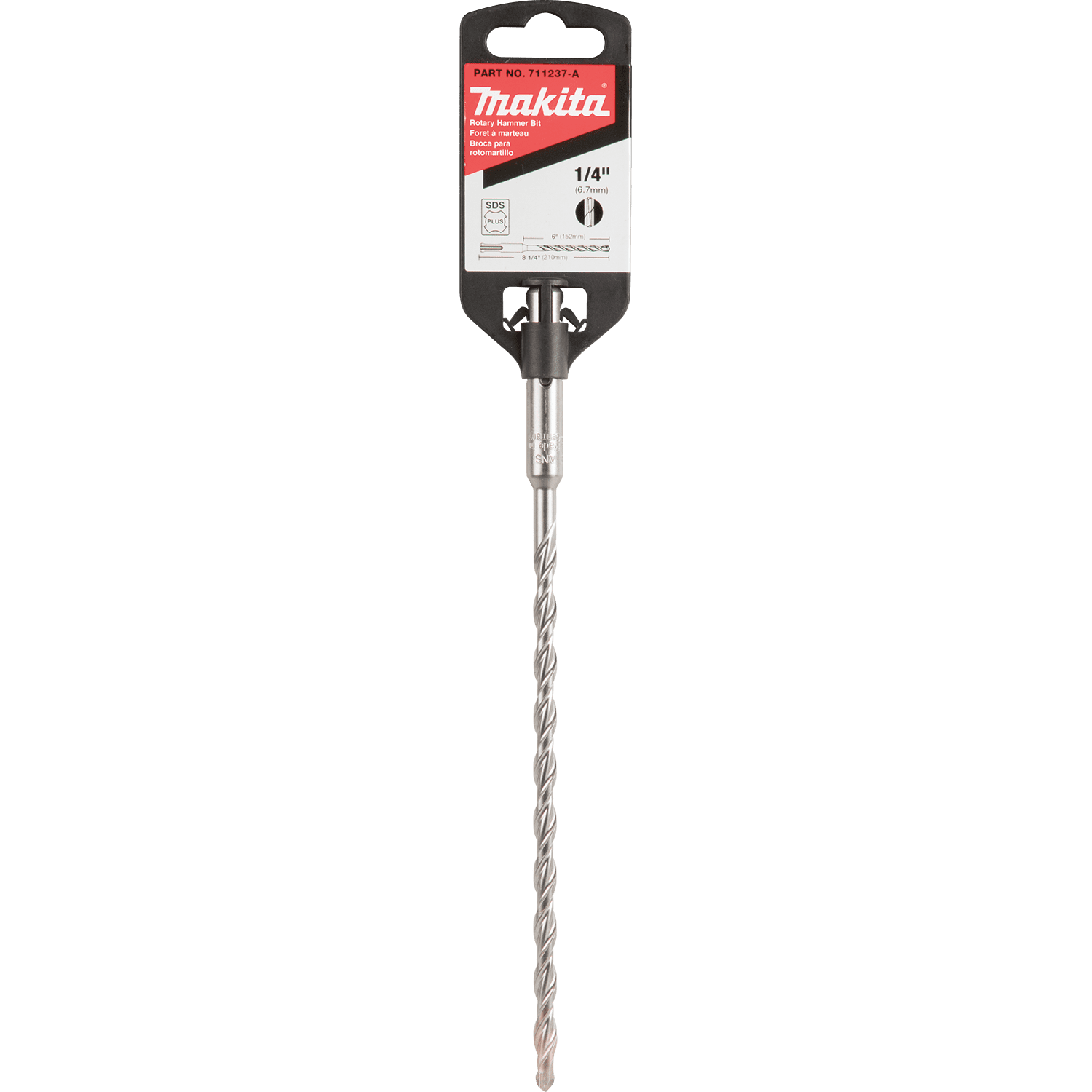 Makita Thruster Style bits are designed with a special carbide tip that penetrates on contact. The advanced flute design makes for faster dust removal and reduced vibration. These bits are designed for drilling holes in a variety of masonry materials including concrete. Thruster Style carbide tip penetrates on contact. Reinforced flute engineered for reduced vibration and faster dust removal. Dynamic chisel shaped head engineered to keep bit in contact with the material during drilling for faster penetration. Rebar chamfers help keep carbide from chipping. For drilling holes in a variety of masonry materials Self-centering tip is ideal for spot drilling. For drilling holes in a variety of masonry materials including concrete. 6" usable length. For use with rotary hammers that accept bits with SDS-PLUS shanks.