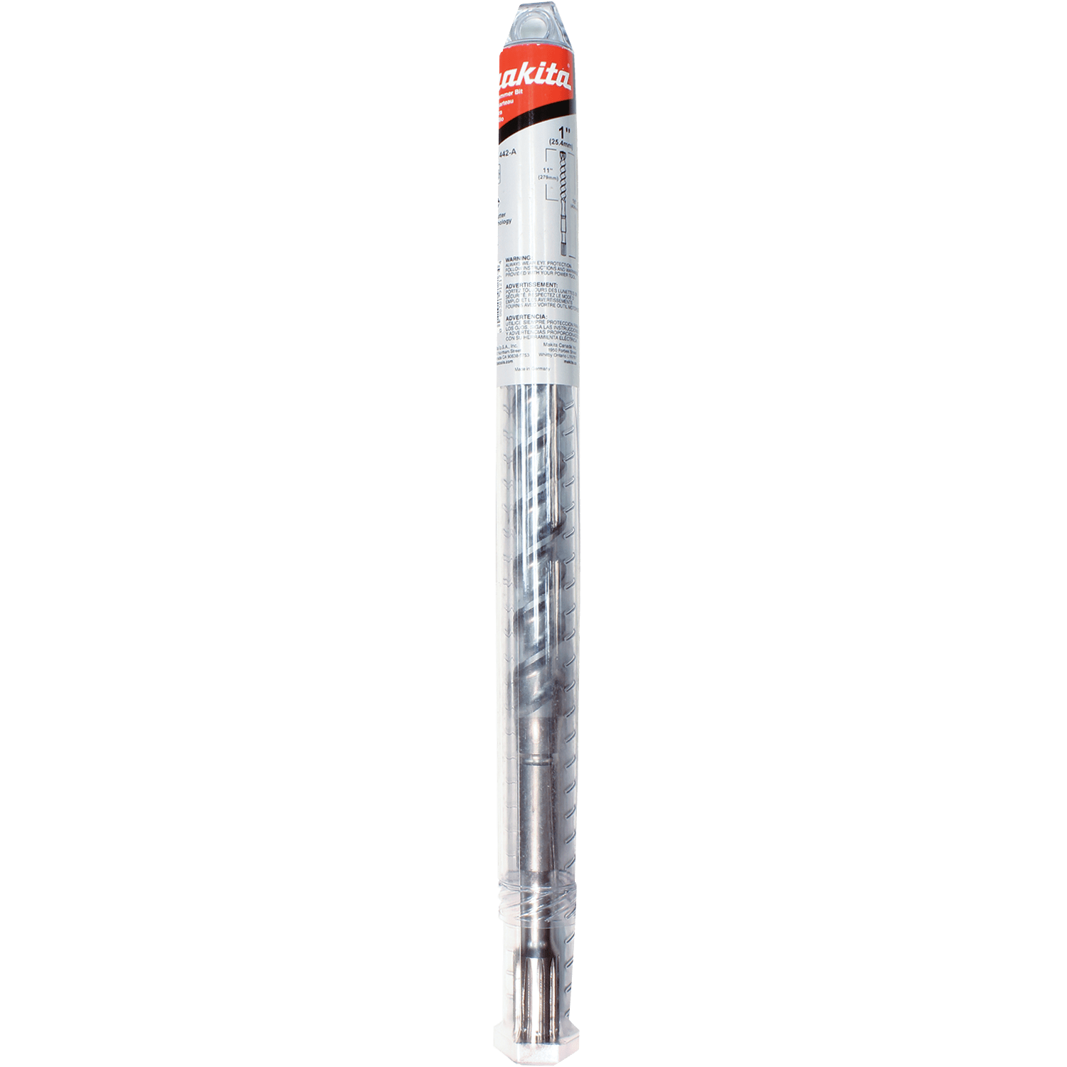Makita 4-Cutter Spline Bit is designed to work with Rotary Hammers that accept Spline shank bits to drill holes in concrete. The 4-cutter technology combines with the central guiding action for efficientand accurate drilling. The high quality steel and special impact grade carbide make for added durability and long life. 4-cutter technology for reduced friction and rapid dust removal. Central guiding action for accurate holes. Centering tip features a more aggressive design for faster hole starting. Engineered for reduced vibration. Wear marking on primary cutter indicates bit wear. Made of the highest quality chrome-nickel-molybdenum steel. For drilling holes in concrete; 11" usable length. For use with Rotary Hammers that accept Spline shank bits.
