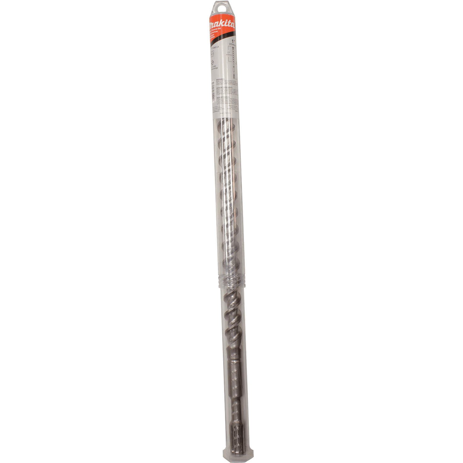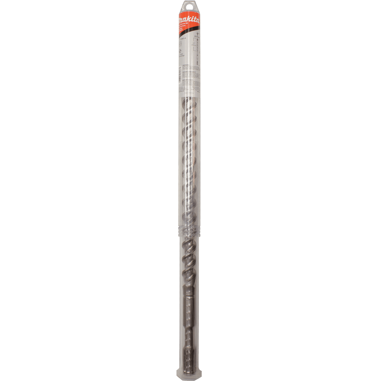 Makita 4-Cutter Spline Bit is designed to work with Rotary Hammers that accept Spline shank bits to drill holes in concrete. The 4-cutter technology combines with the central guiding action for efficientand accurate drilling. The high quality steel and special impact grade carbide make for added durability and long life. 4-cutter technology for reduced friction and rapid dust removal. Central guiding action for accurate holes. Centering tip features a more aggressive design for faster hole starting. Engineered for reduced vibration. Wear marking on primary cutter indicates bit wear. Made of the highest quality chrome-nickel-molybdenum steel. For drilling holes in concrete; 17" usable length. For use with Rotary Hammers that accept Spline shank bits.