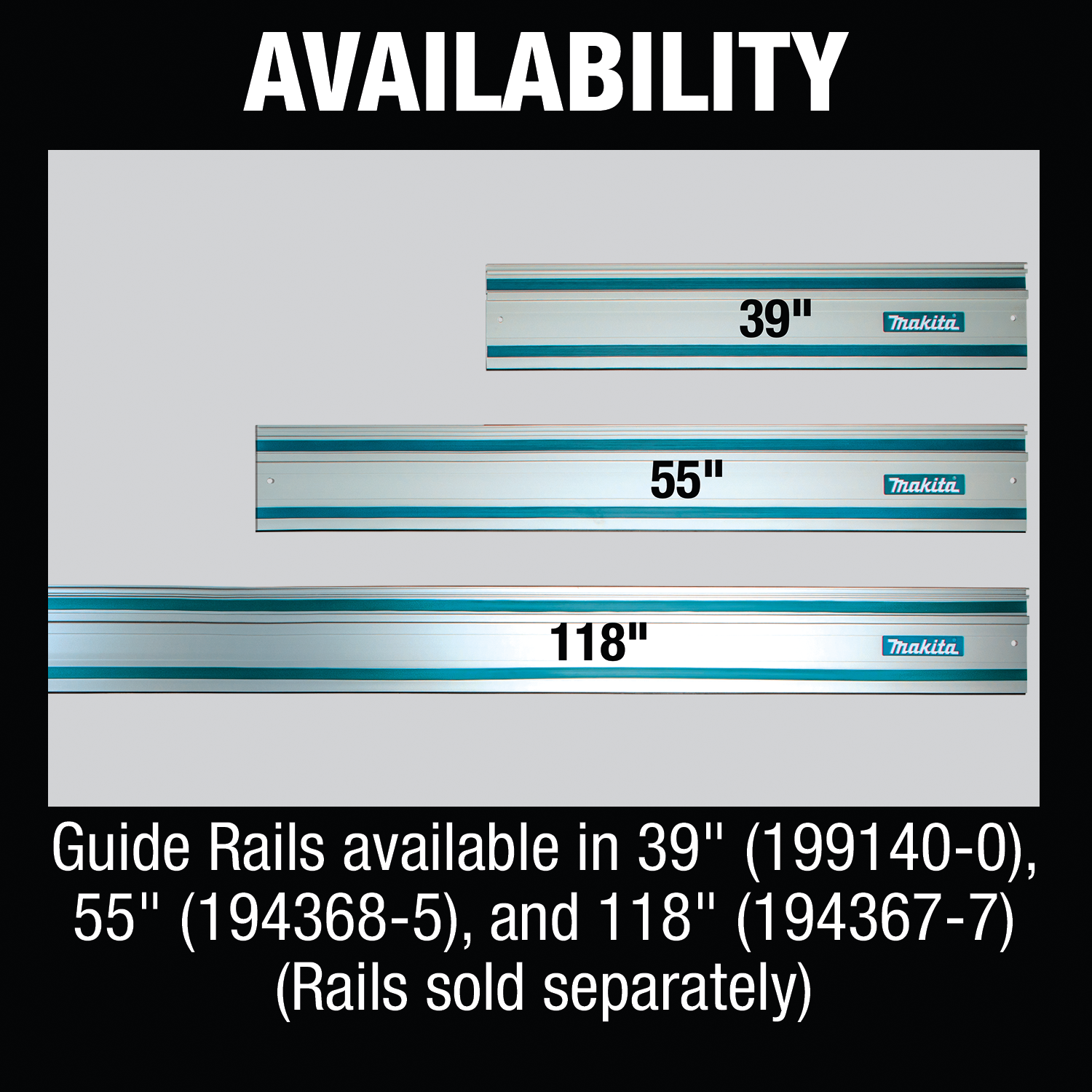 The Makita 118" Plunge Saw Guide Rail (194367-7), when used with a Makita Plunge Circular Saw (SP6000) is a more portable option to a table saw for ripping sheet material. The Guide Rail interacts with the Plunge Saw (not included) to provide smooth, dead-on straight cuts. For use with the Makita 6-1/2 in. Plunge Circular Saws (models SP6000K/K1 and SP6000J/J1). 118" guide rail for use with Makita Plunge Saw models XPS01, XPS02, and SP6000J. Interacts with the saw base and engineered to deliver smooth, dead-on straight or bevel cutting. Ideal for ripping sheet material. Alternate use with select routers and circular saws, must use with router guide rail adapter (194579-2) and saw guide rail adapter (196953-0).