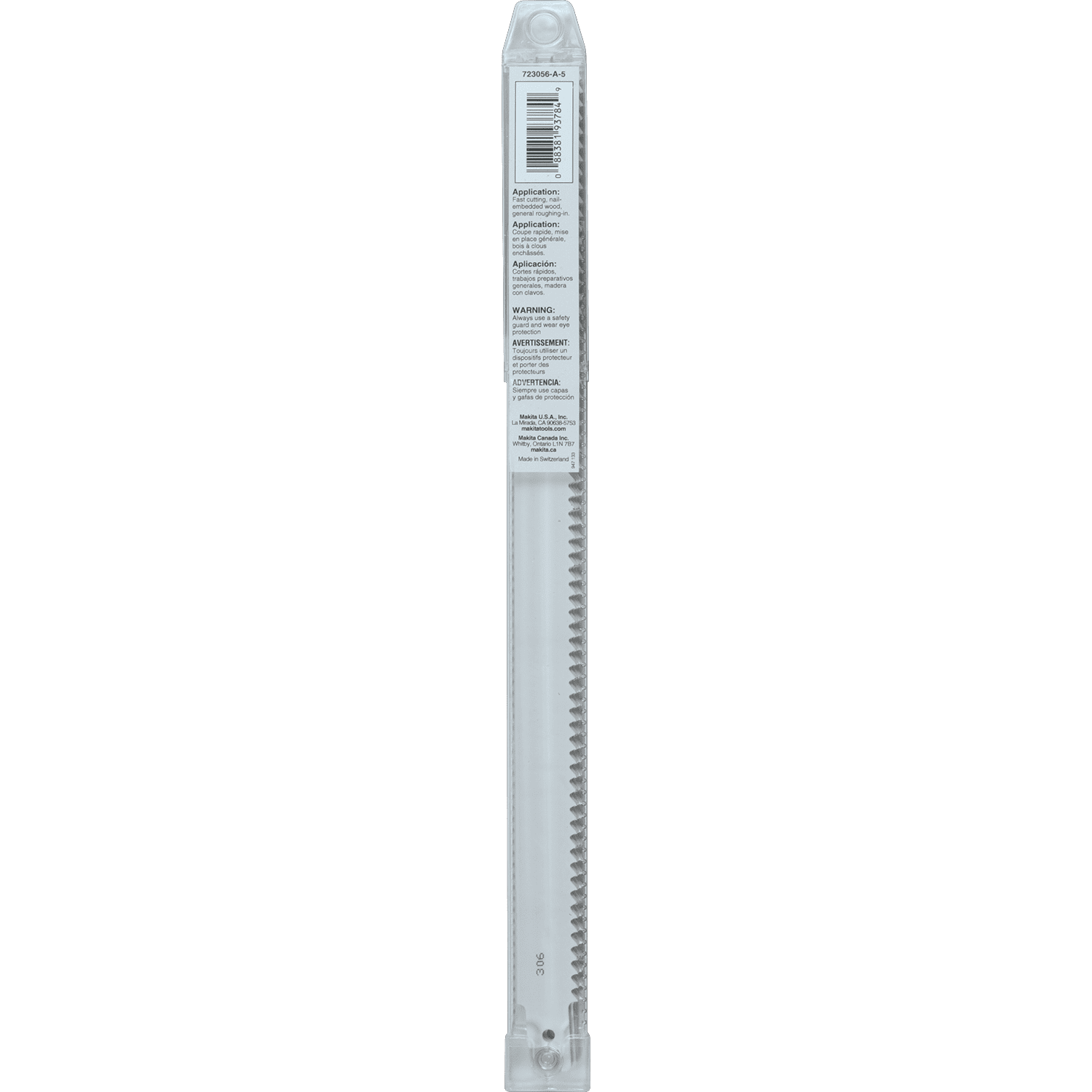 Makita Wood Cutting Reciprocating Saw Blades are made from high quality steel for clean cuts and longer life. They are designed to cut through a variety of wood building materials. The blades feature a 3/4 in. width for faster cutting. Bi-Metal construction lasts 10 times longer than HCS blades. First tooth consistently centered on each blade for straight plunge cuts. For fast cutting in nail embedded wood, insulating board, plywood and plastic pipe from 1/4" to 10". Convenient 5 pack.