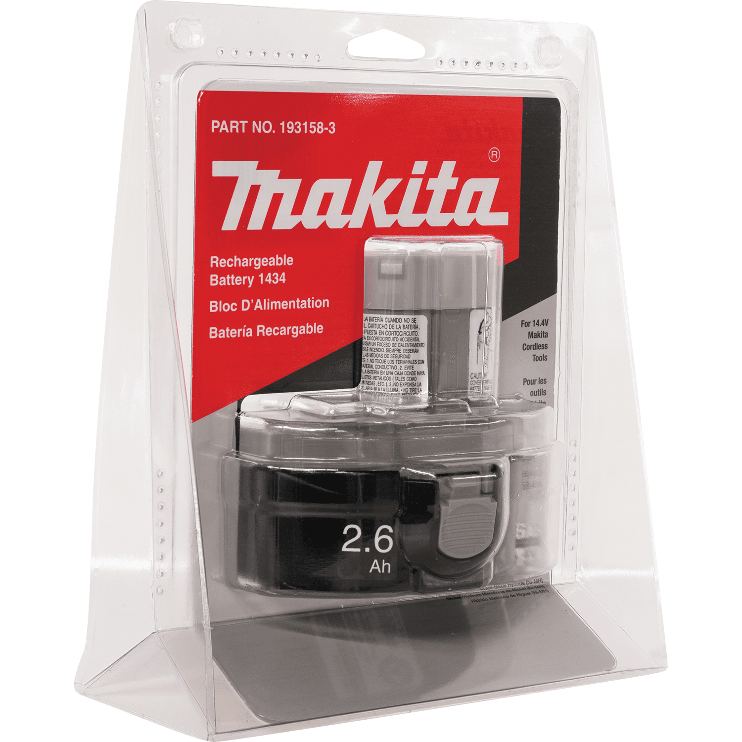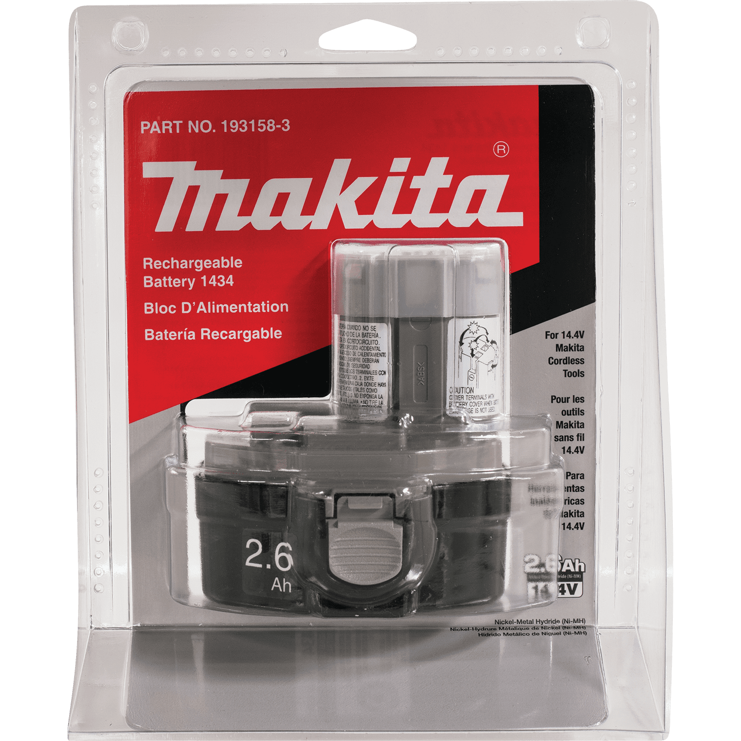 Our 14.4 Volt Nickel-Metal Hydride (Ni-MH) battery is a type of rechargeable battery similar to a Nickel-Cadmium (NiCad) battery but without the expensive and environmentally-unfriendly metal cadmium. Features 2.6 amp hours (Ah) of power. 14.4 Volt with 2.6 Amp hours (ah) of power. Up to 70 percent longer run time than standard nickel-cadmium batteries. Multi-contact terminals ensure tight connection to power tool. Shock-absorbing construction protects battery cells against dust and vibration.