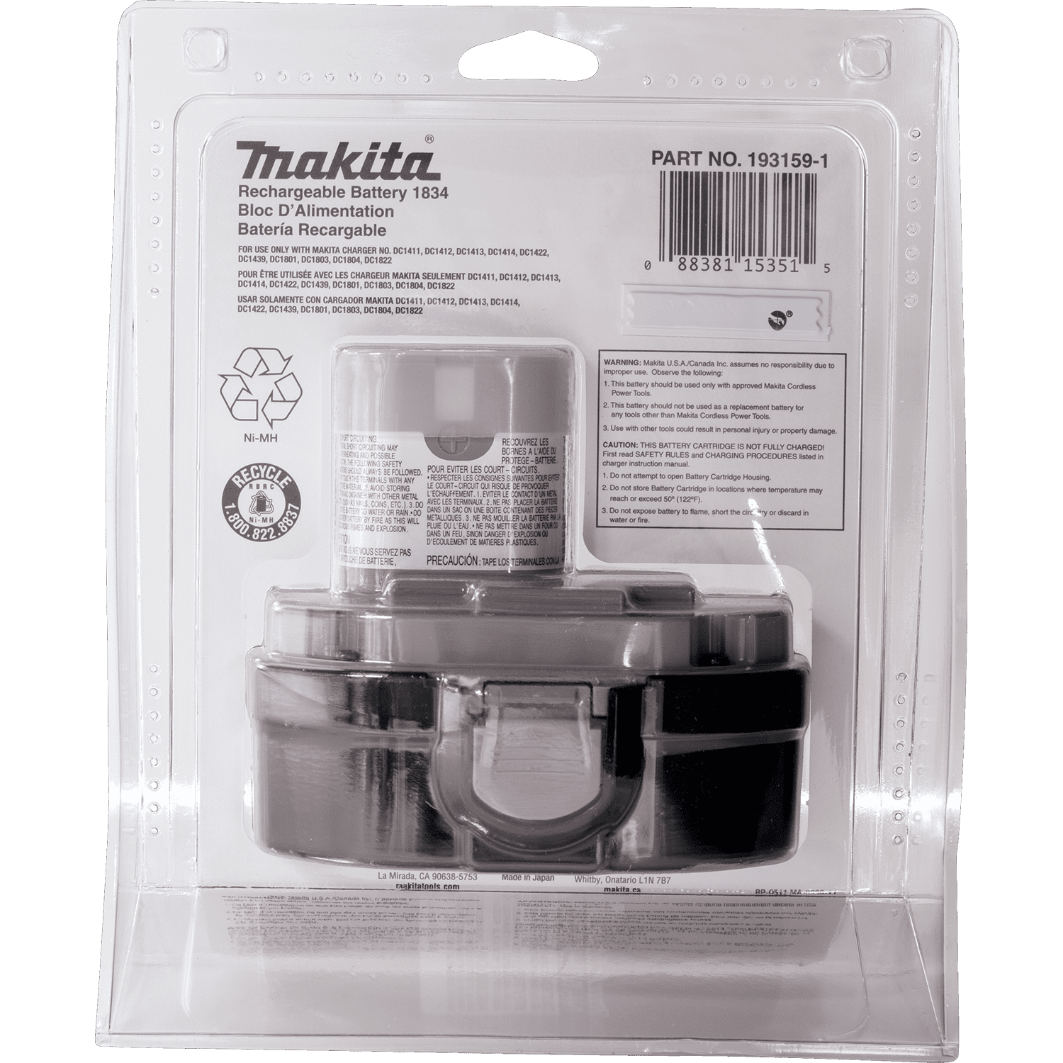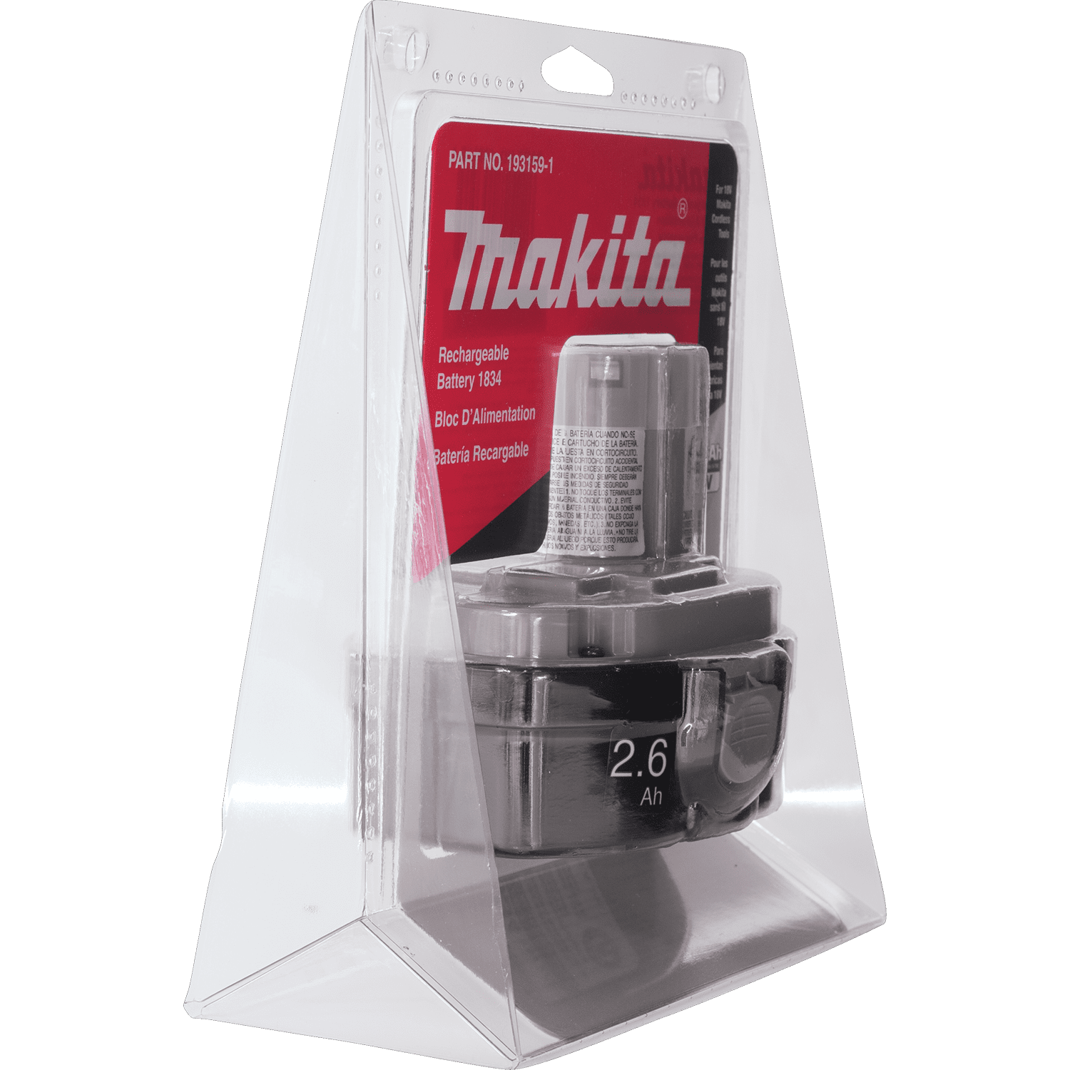 The Makita 18V Nickel-Metal Hydride-1834 battery has 2.6Ah of power and is compatible with Makita DC1804, DC24SA and DC1822 cordless battery chargers. The Makita 18-Volt 2.6 Ah Ni-MH Pod-Style Battery Pack features longer run time than standard Nickel Cadmium (Ni-Cd) batteries. Features a shock-absorbing construction to protect the battery cells against dust and vibration. 18 Volt with 2.6 Amp hours (Ah) of power. Use with Makita charger DC1804 or automotive charger DC1822. Up to 70 percent longer run time than standard nickel-cadmium batteries. Multi-contact terminals ensure tight connection to power tool. Shock-absorbing construction protects battery cells against dust and vibration.