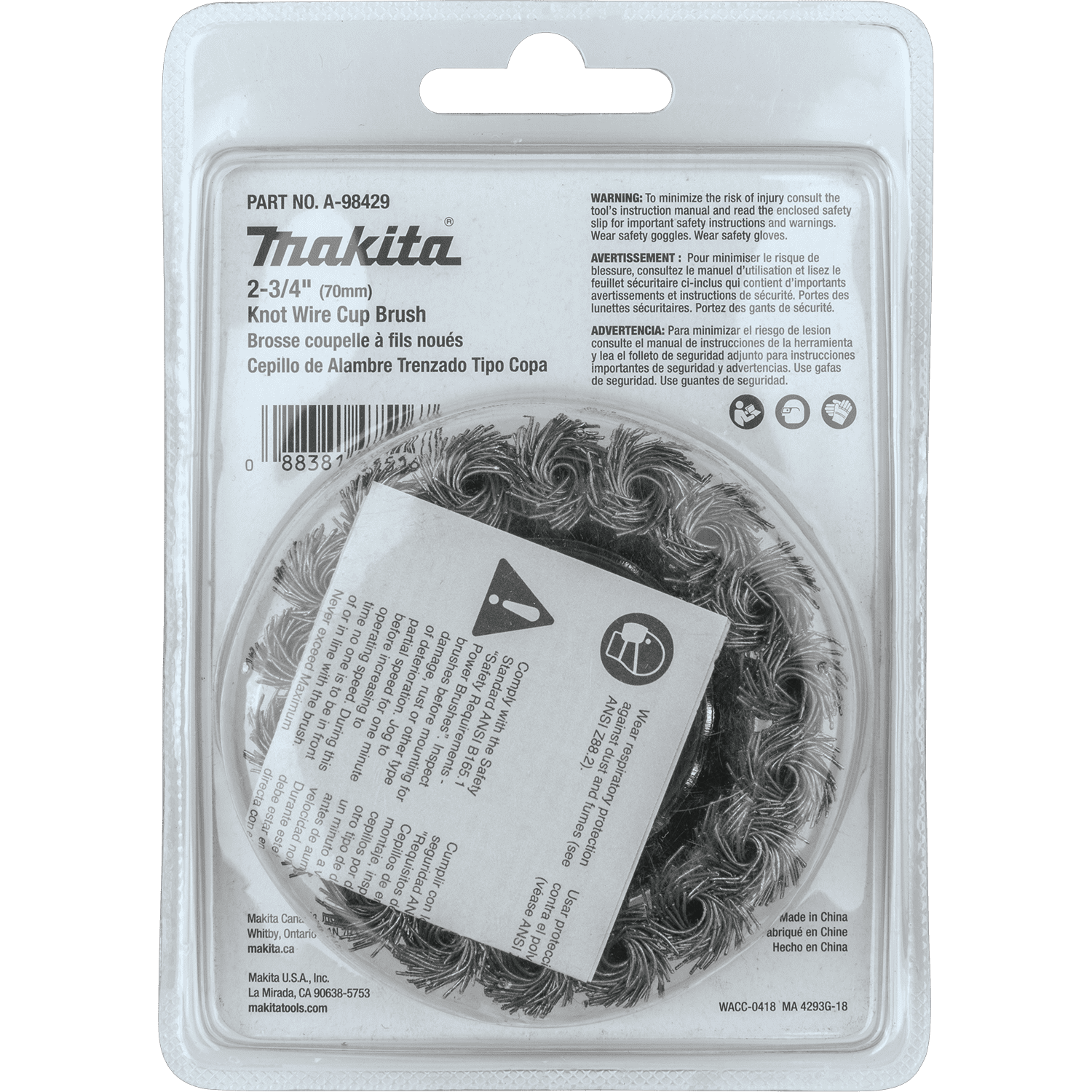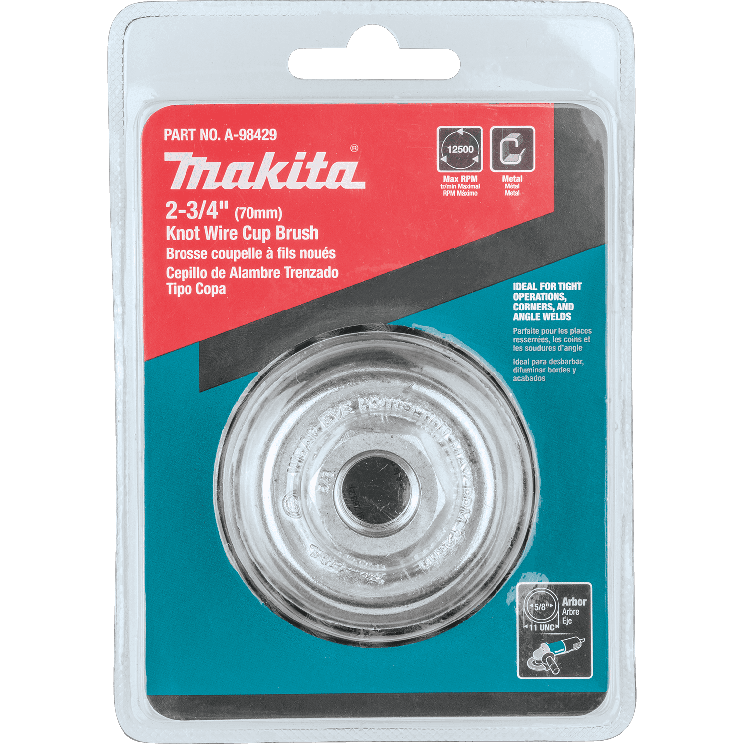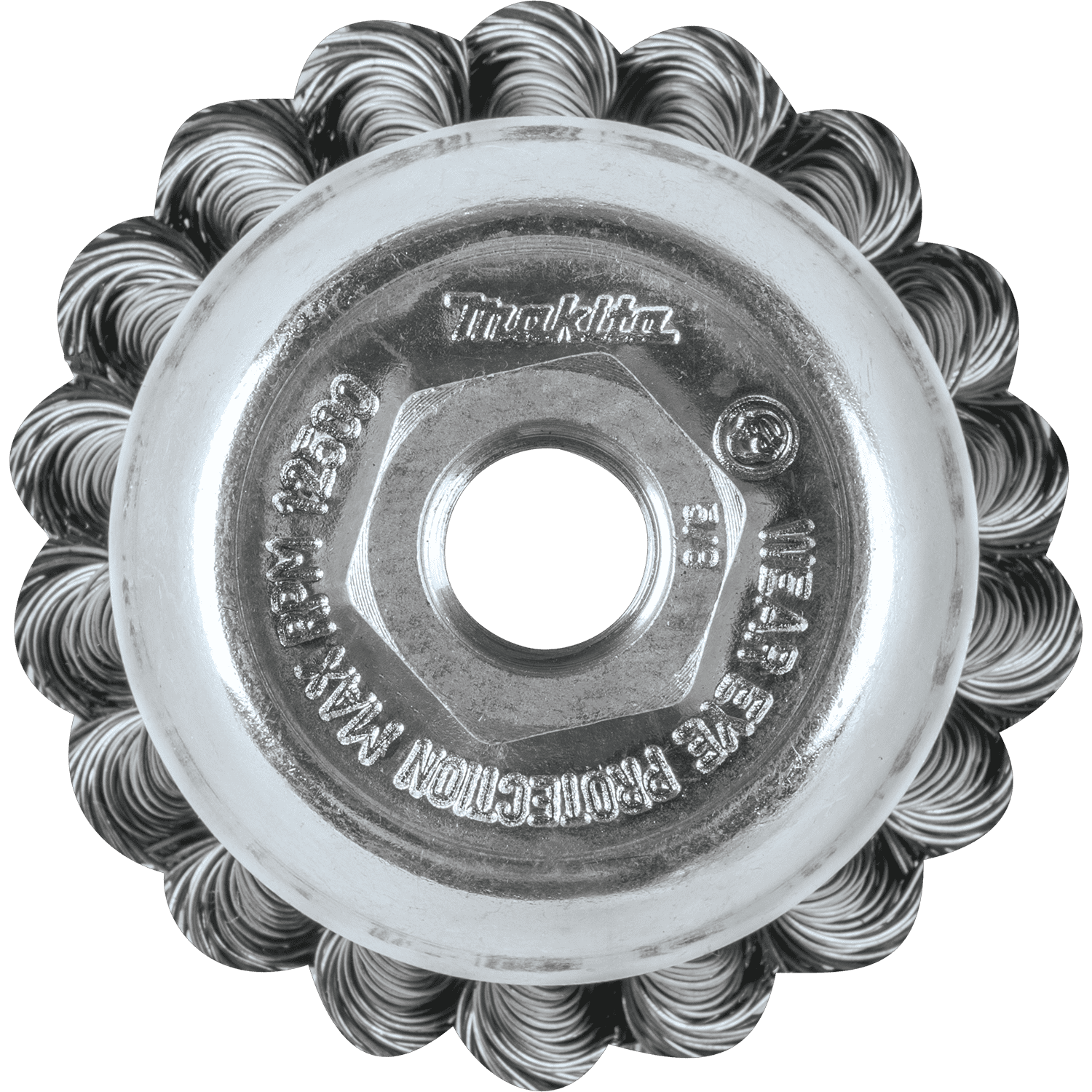 Makita Wire Cup Brushes are designed to work with angle grinders for a variety of material removal applications. The durable carbon steel wire construction is engineered for long service life. It is ideal for tight operations, corners and angle welds. Durable carbon steel wire construction. Rugged knot construction. Ideal for tight operations, corners, and angle welds. Max RPM 12,500. For use with angle grinders.