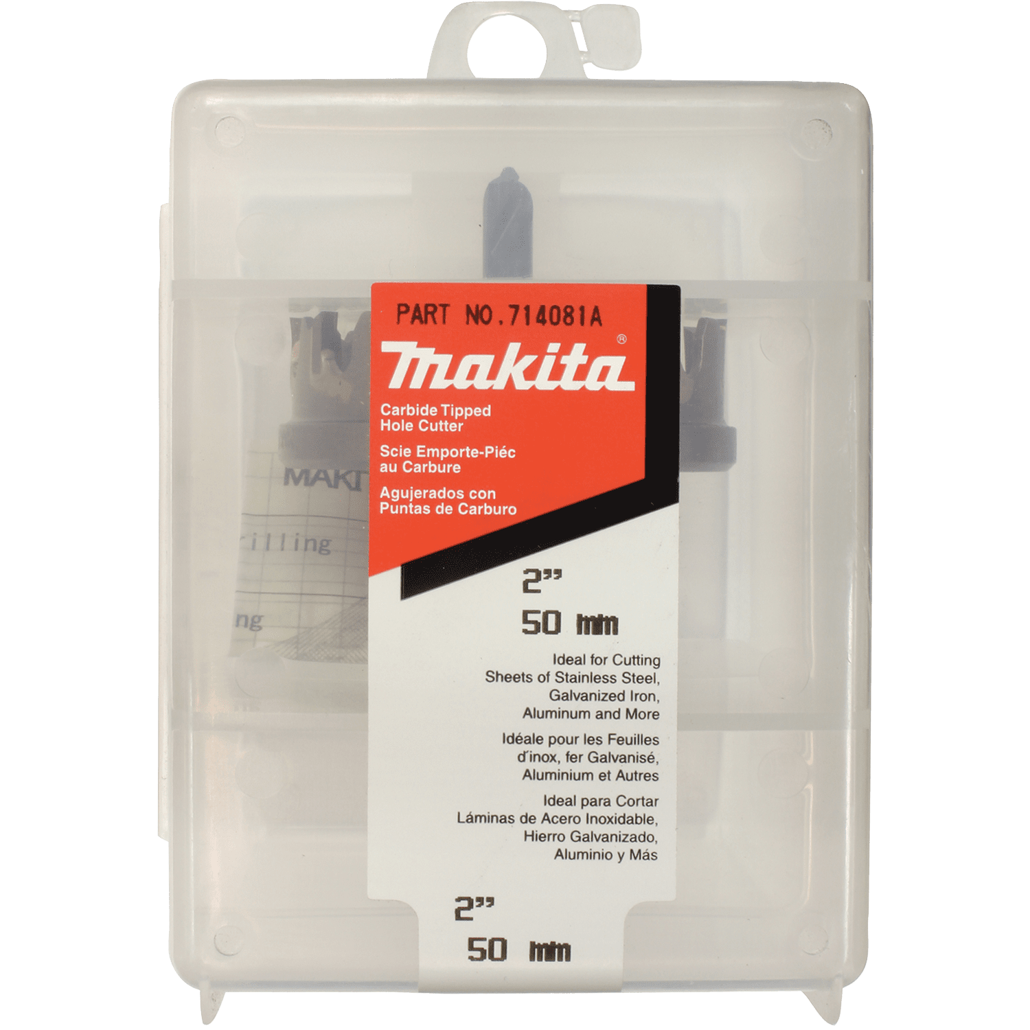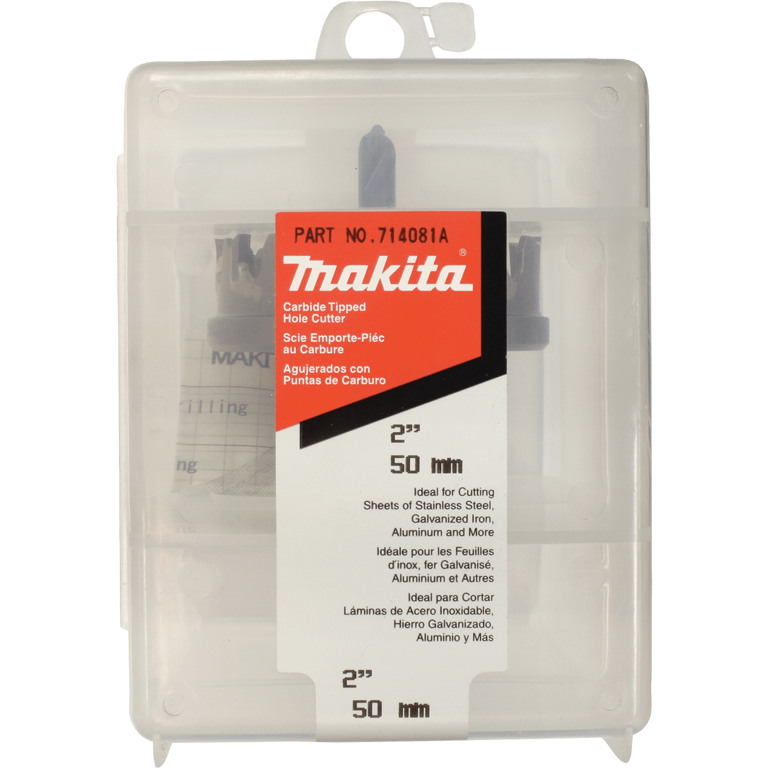 Makita Industrial Carbide-Tipped Holes Saws lasts 15X longer than bi-metal hole saws. They also drill 2.6X faster than bi-metal hole saws. The shoulder design allows drilling up to 1/8" thick while preventing "punching through" the material. Specially designed carbide tips for cutting clean holes. Shoulder engineered to prevent "punching through" the material. Cobalt center tip ideal for use in a variety of metals including stainless steel and aluminum. For drilling holes in metals including aluminum, galvanized iron and stainless steel. Maximum cutting depth of 1/8".