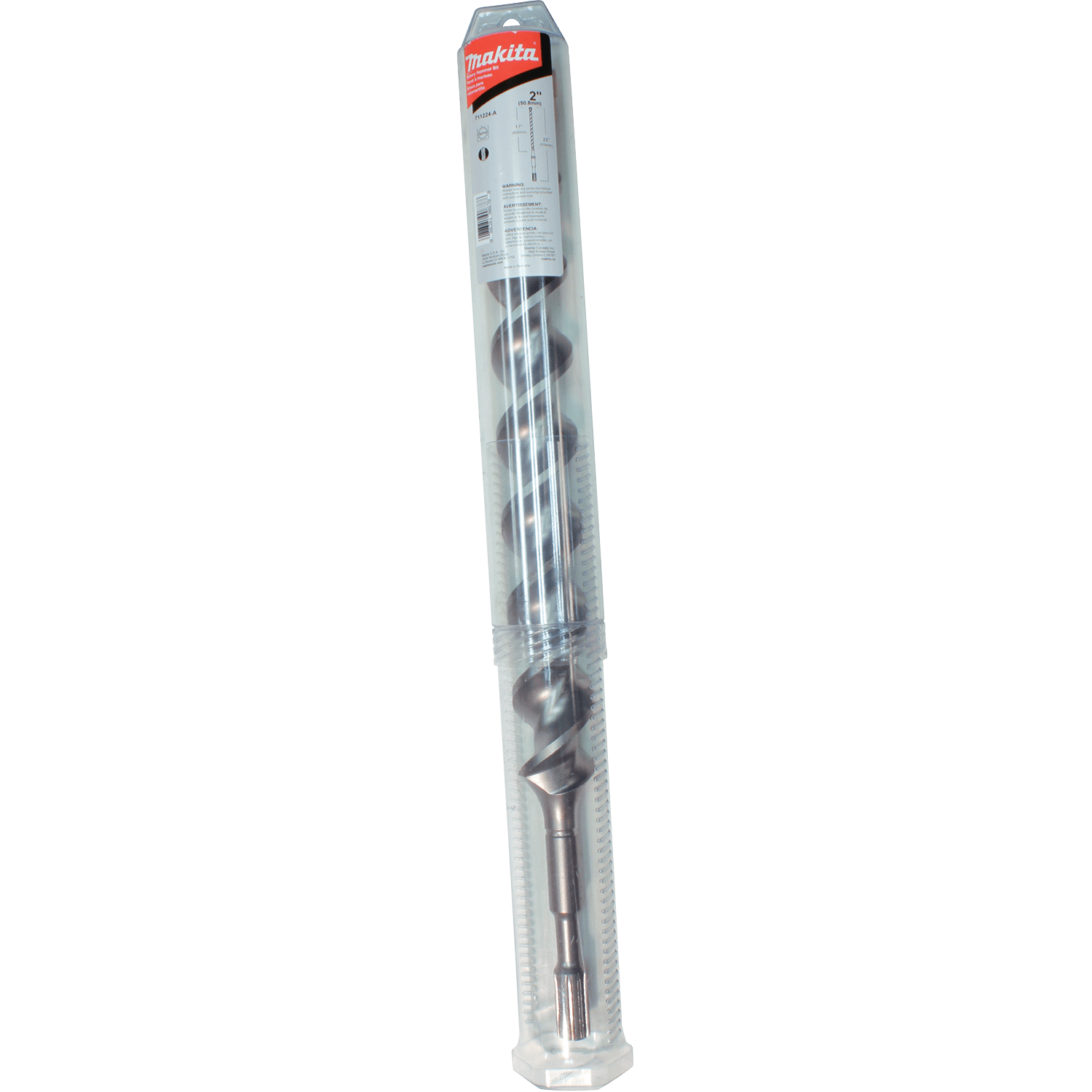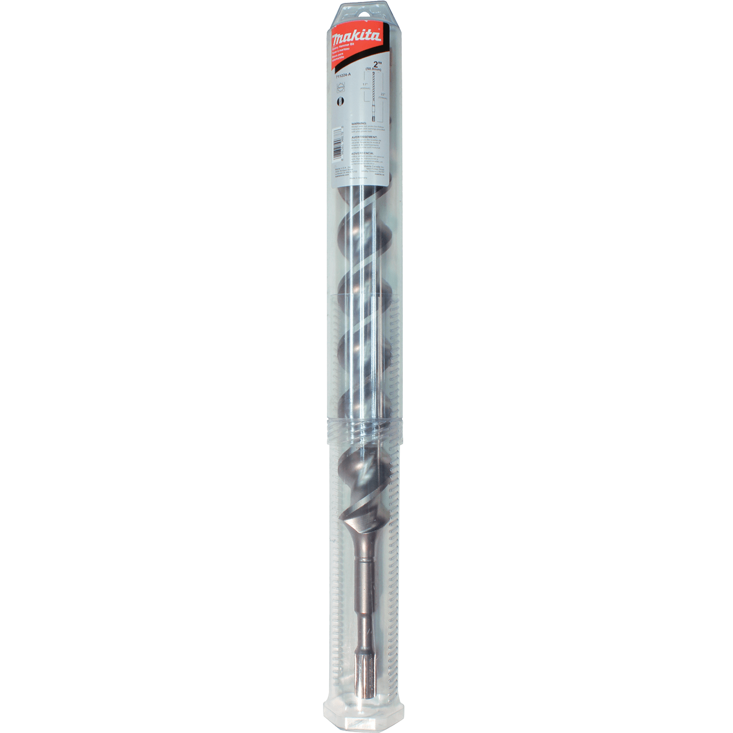 Makita 2-Cutter Spline Bit is designed to work with Rotary Hammers that accept Spline shank bits to drill holes in concrete. The bit features a double flute design for maximum dust removal. Manufactured with high quality tungsten carbide tips with an annealed body for increased duability and long life. 2-cutter design for fast drilling. Symmetrical, double flute design for reduced vibration. Extra strong high quality tungsten carbide tips for long life. Annealed body to reduce tension for greater torque resistance. For drilling holes in reinforced and non-reinforced concrete, block and brick. 17" usable length. For use with Rotary Hammers that accept Spline shank bits.