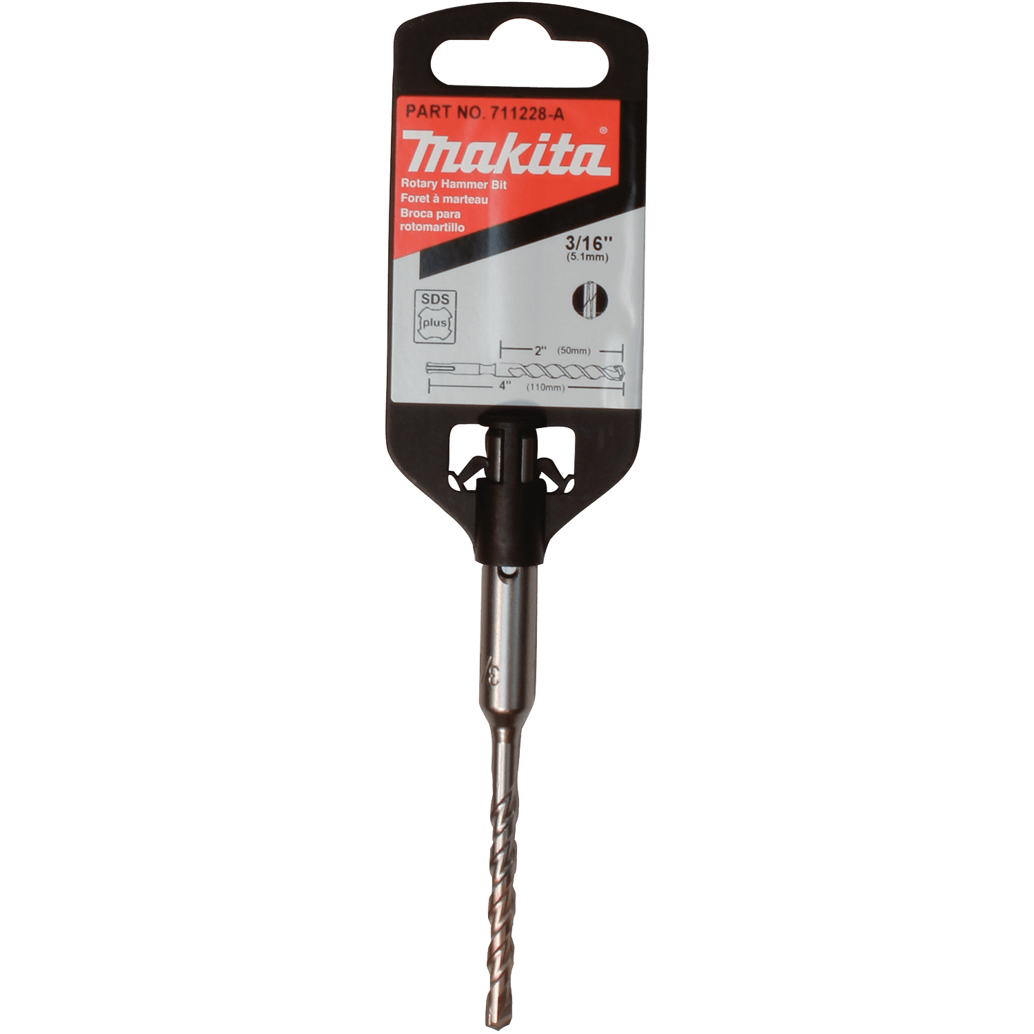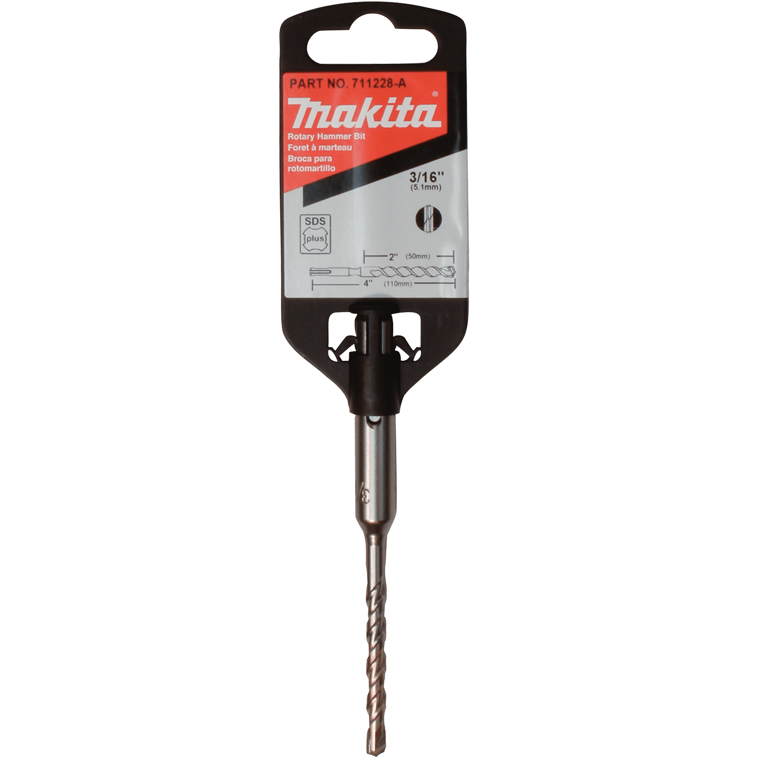 Makita Thruster Style® bits are designed with a special carbide tip that penetrates on contact. The advanced flute design makes for faster dust removal and reduced vibration. These bits are designed for drilling holes in a variety of masonry materials including concrete. Thruster® Style carbide tip penetrates on contact and plows through rebar. Reinforced flute engineered for reduced vibration and faster dust removal. Dynamic chisel shaped head engineered to keep bit in contact with the material during drilling for faster penetration. Rebar chamfers help keep carbide from chipping. Self-centering tip is ideal for spot drilling. For drilling holes in a variety of masonry materials including concrete. 2" usable length. For use with rotary hammers that accept bits with SDS-PLUS shanks.