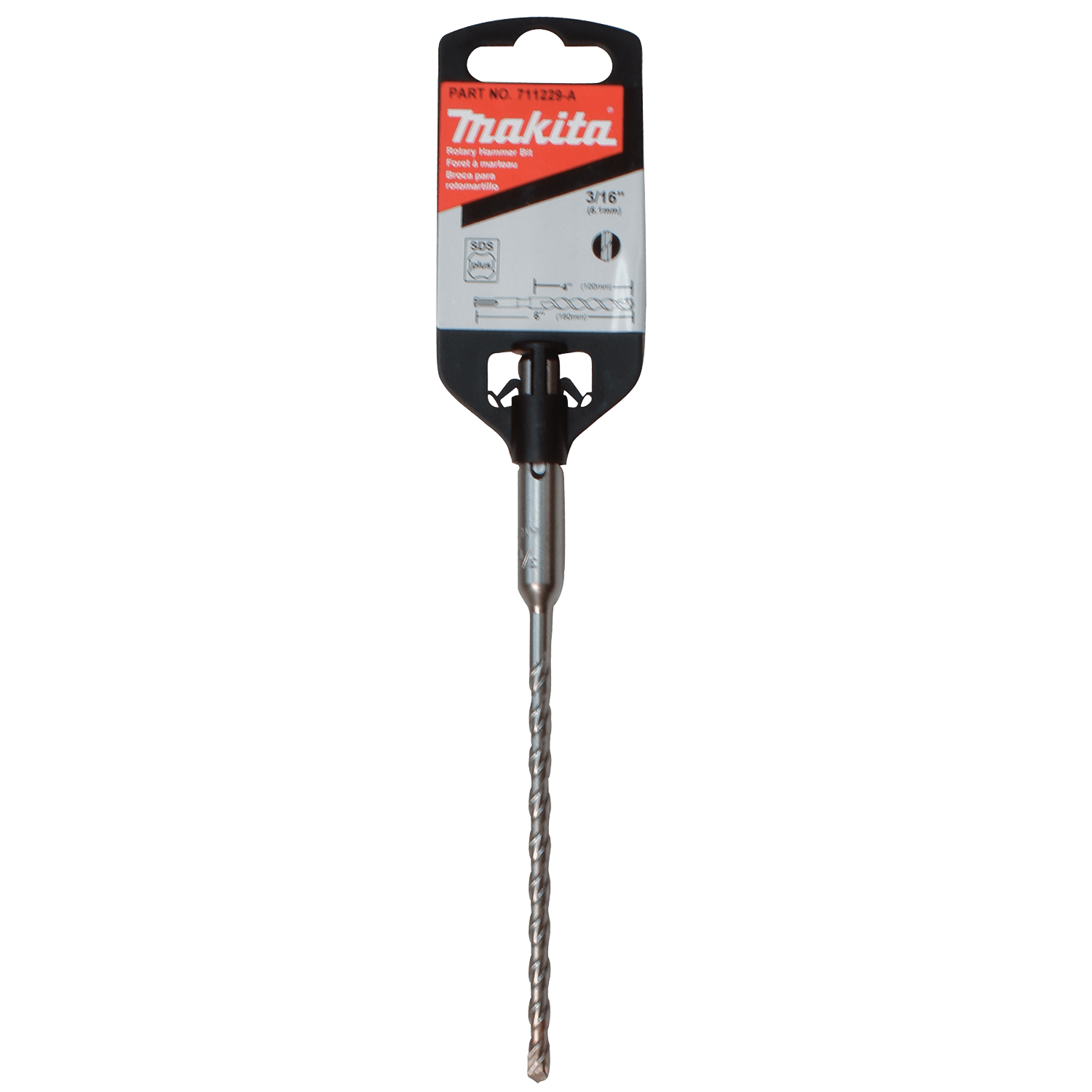 Makita Thruster Style® bits are designed with a special carbide tip that penetrates on contact. The advanced flute design makes for faster dust removal and reduced vibration. These bits are designed for drilling holes in a variety of masonry materials including concrete. Thruster® Style carbide tip penetrates on contact and plows through rebar. Reinforced flute engineered for reduced vibration and faster dust removal. Dynamic chisel shaped head engineered to keep bit in contact with the material during drilling for faster penetration. Rebar chamfers help keep carbide from chipping. Self-centering tip is ideal for spot drilling. For drilling holes in a variety of masonry materials including concrete. 4" usable length. For use with rotary hammers that accept bits with SDS-PLUS shanks.