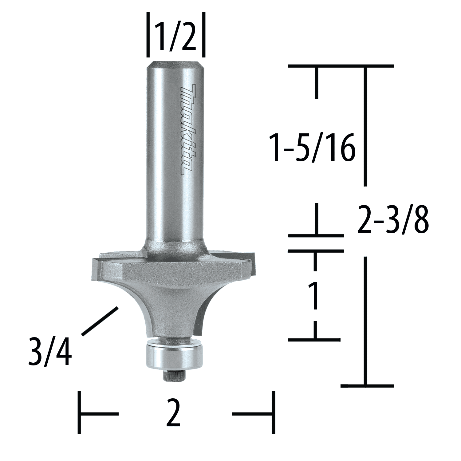 Makita Carbide Tipped Router Bits are designed to work with routers for efficient material removal in a variety of woods. The bits have carbide tipped cutting edges for faster material removal and long life. Each bit is manufactured from high quality steel for added durability. Carbide-tipped for improved material removal and added durability. Two flute design for a smoother finish and reduced vibration. For smooth decorative edge rounding or molding. Lower depth setting produces a rounded corner with a decorative bead. For use with routers that accept bits with 1/4" shanks.