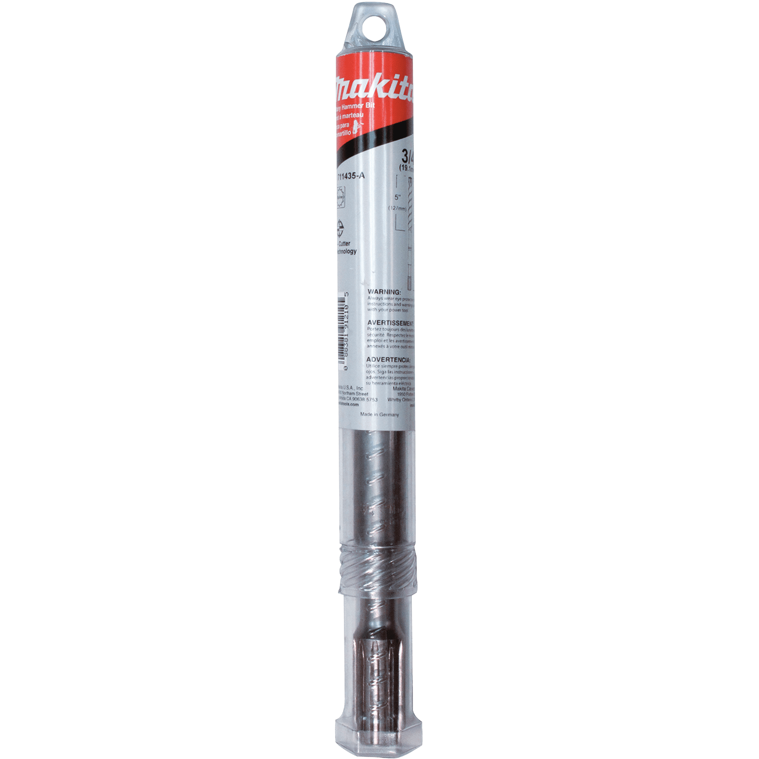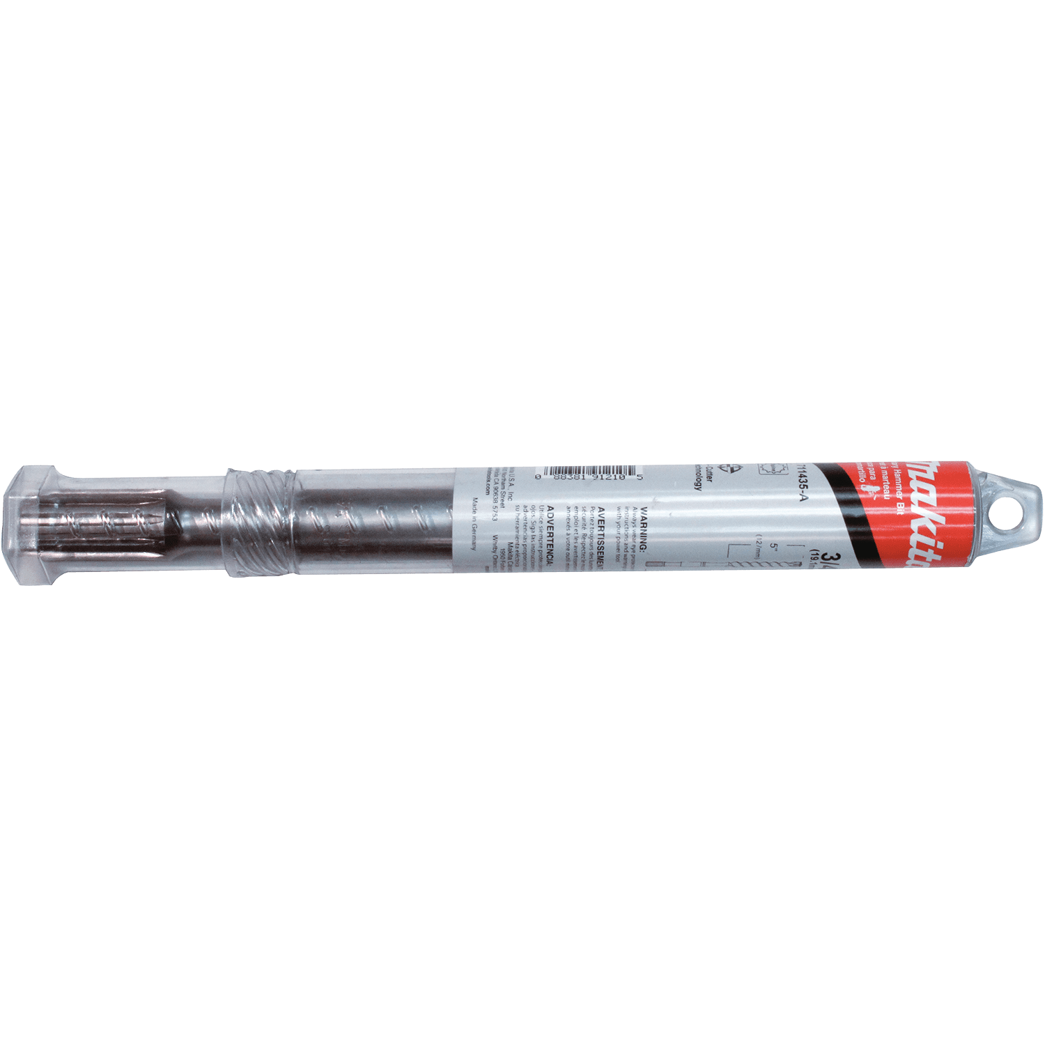 Makita 4-Cutter Spline Bit is designed to work with Rotary Hammers that accept Spline shank bits to drill holes in concrete. The 4-cutter technology combines with the central guiding action for efficientand accurate drilling. The high quality steel and special impact grade carbide make for added durability and long life. 4-cutter technology for reduced friction and rapid dust removal. Central guiding action for accurate holes. Centering tip features a more aggressive design for faster hole starting. Engineered for reduced vibration. Wear marking on primary cutter indicates bit wear. Made of the highest quality chrome-nickel-molybdenum steel. For drilling holes in concrete; 5" usable length. For use with Rotary Hammers that accept Spline shank bits.