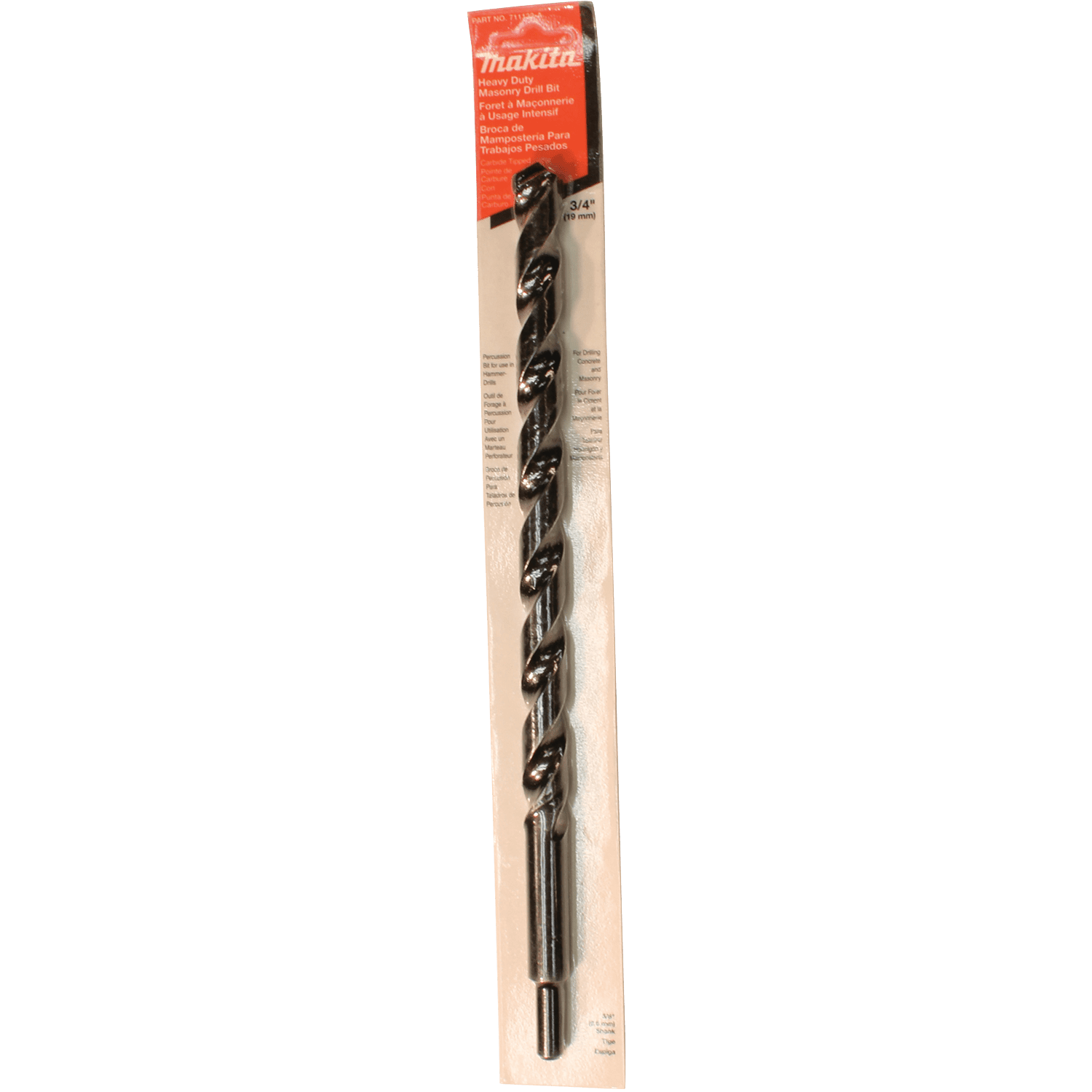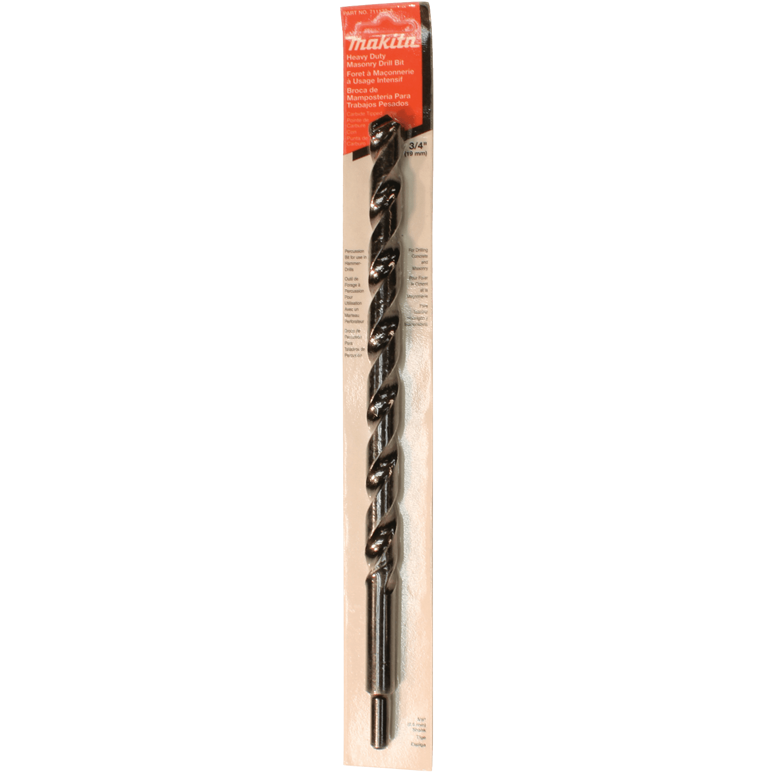Makita Percussion Bits are designed for use in a variety of masonry materials. They feature carbide tips for longer bit life. The wide flute design allows for rapid dust removal. Carbide tipped for longer bit life. Wide flutes for rapid dust removal. Resharpenable for extended bit life. For use in corded and cordless hammer drills for drilling holes in masonry materials.