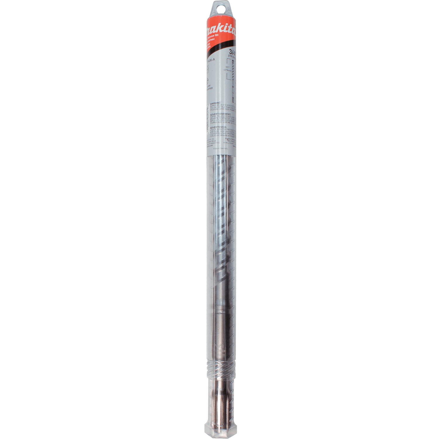 Makita 4-Cutter Spline Bit is designed to work with Rotary Hammers that accept Spline shank bits to drill holes in concrete. The 4-cutter technology combines with the central guiding action for efficientand accurate drilling. The high quality steel and special impact grade carbide make for added durability and long life. 4-cutter technology for reduced friction and rapid dust removal. Central guiding action for accurate holes. Centering tip features a more aggressive design for faster hole starting. Engineered for reduced vibration. Wear marking on primary cutter indicates bit wear. Made of the highest quality chrome-nickel-molybdenum steel. For drilling holes in concrete; 11" usable length. For use with Rotary Hammers that accept Spline shank bits.