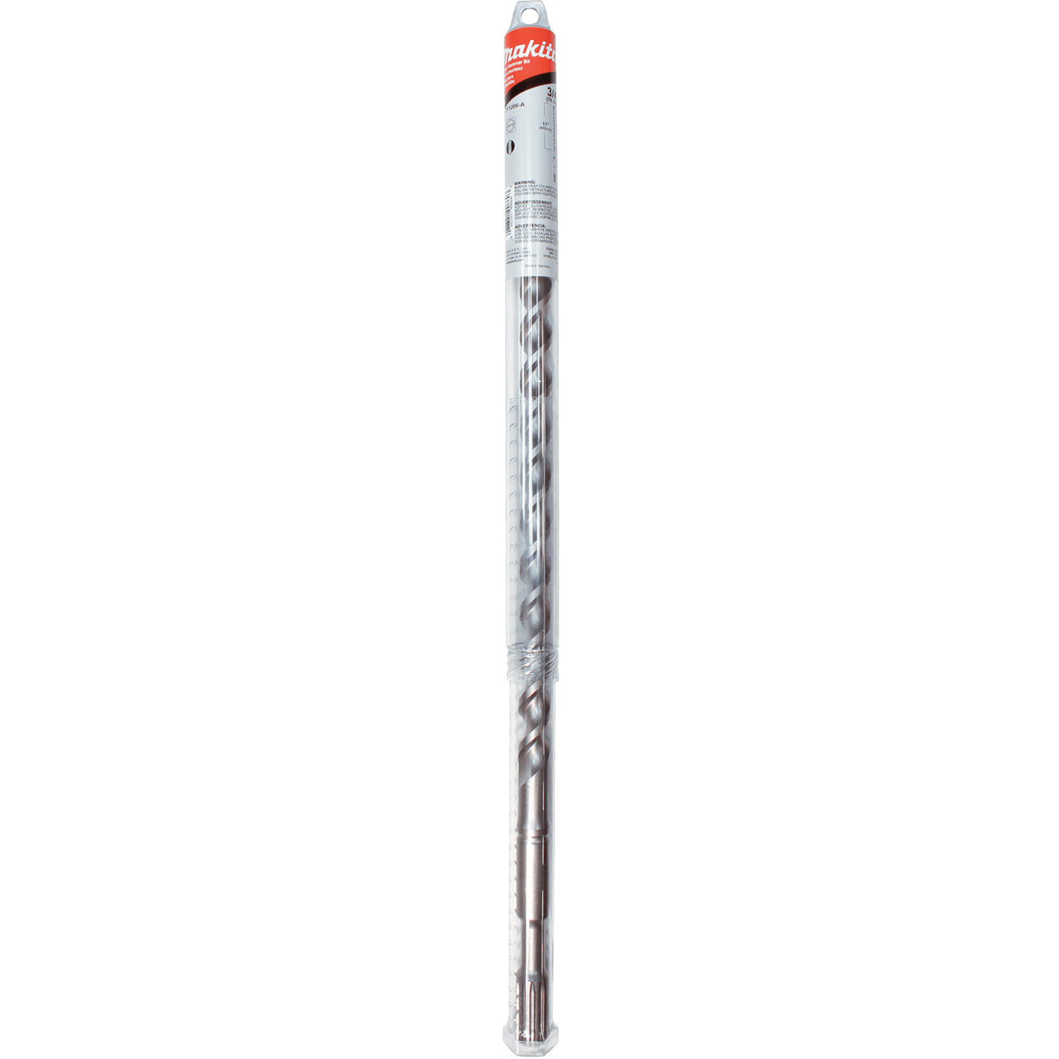 Makita 2-Cutter Spline Bit is designed to work with Rotary Hammers that accept Spline shank bits to drill holes in concrete. The bit features a double flute design for maximum dust removal. Manufactured with high quality tungsten carbide tips with an annealed body for increased duability and long life. 2-cutter design for fast drilling. Symmetrical, double flute design for reduced vibration. Extra strong high quality tungsten carbide tips for long life. Annealed body to reduce tension for greater torque resistance. For drilling holes in reinforced and non-reinforced concrete, block and brick. 17" usable length. For use with Rotary Hammers that accept Spline shank bits.
