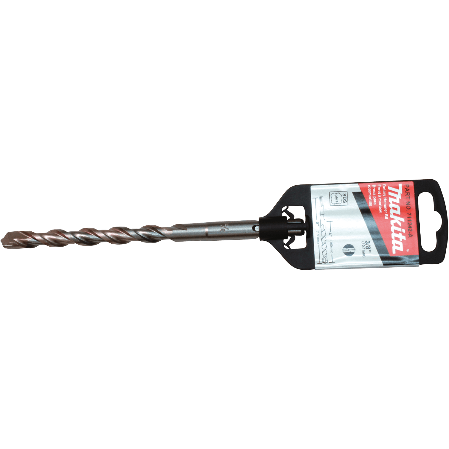 Makita Thruster Style bits are designed with a special carbide tip that penetrates on contact. The advanced flute design makes for faster dust removal and reduced vibration. These bits are designed for drilling holes in a variety of masonry materials including concrete. Thruster Style carbide tip penetrates on contact and plows through rebar. Reinforced flute engineered for reduced vibration and faster dust removal. Dynamic chisel shaped head engineered to keep bit in contact with the material during drilling for faster penetration. Rebar chamfers help keep carbide from chipping. Self-centering tip is ideal for spot drilling. For drilling holes in a variety of masonry materials including concrete. 4" usable length. For use with rotary hammers that accept bits with SDS-PLUS shanks.