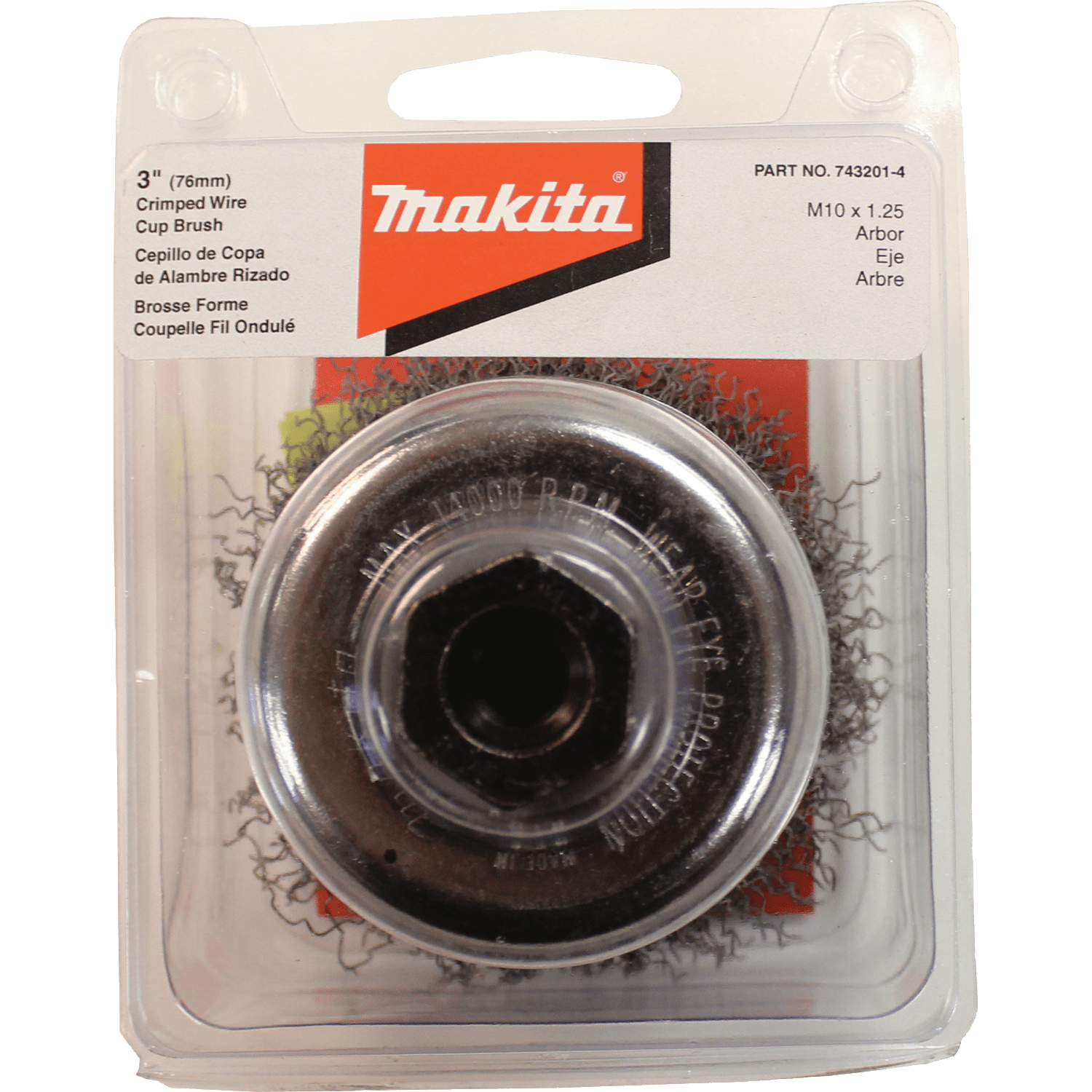 The Makita 3 in. Wire Cup Brush offers continuous brushing action and a fine finish. It is excellent for cleaning and removing paint, scale and light rust from flat surfaces. Durable construction for use with grinders that feature an M10 arbor. Excellent for edges, paint-scale and light rust removal. Made of carbon-steel wire for durability. For angle grinders with an M10 x 1.25 arbor or adapter. Use with a spindle-mount washer (261039-0).
