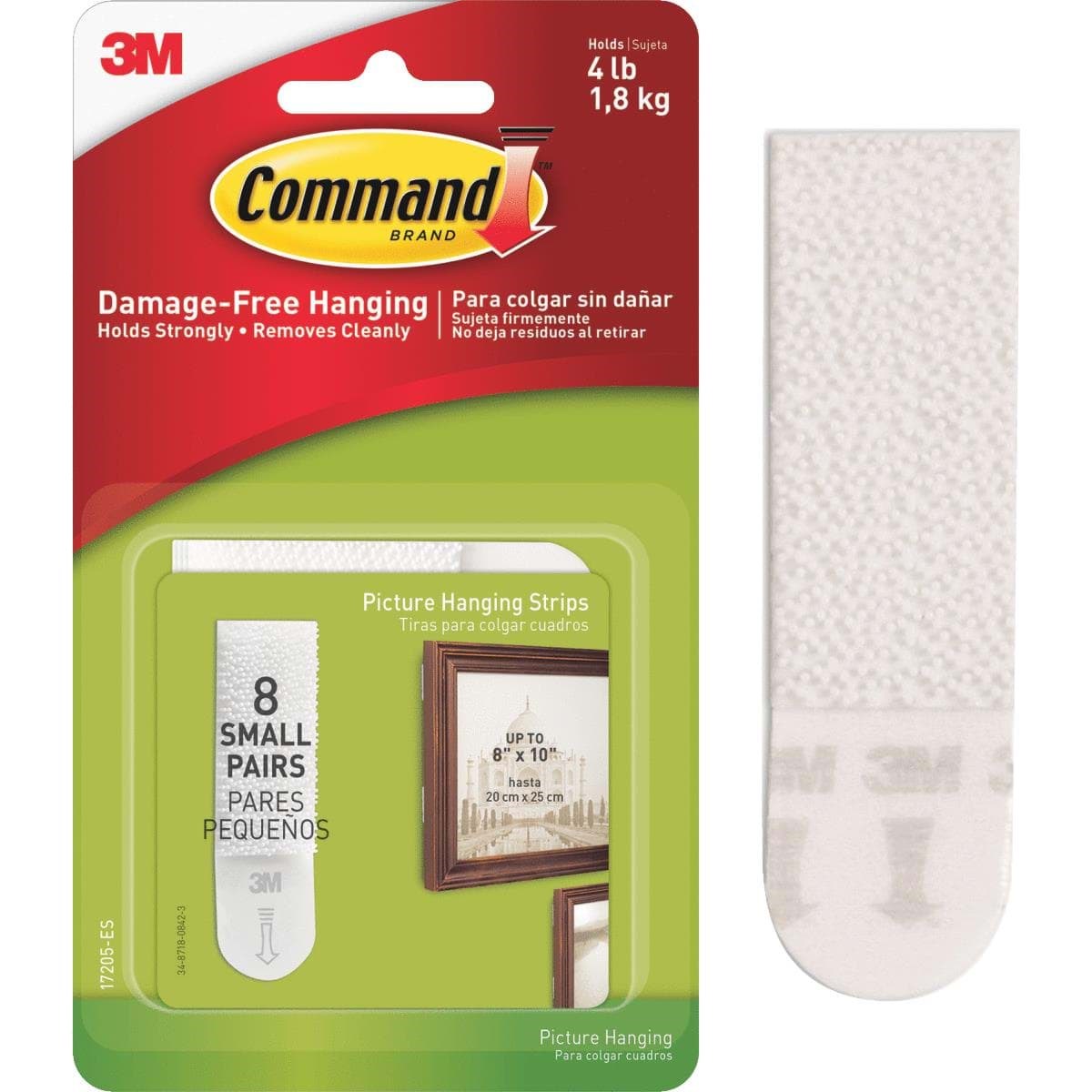 Command interlocking picture hanging strips make decorating quick and easy. One click tells you picture hanging strips are locked in and holding tight. Best of all, when you are ready to take down or move your pictures, they come off leaving no wall damage, cracked plaster or sticky residue. Command interlocking picture hanging strips come in 3 sizes: Small strips hold most 8 x 10 frames, medium strips hold most 18 x 24 frames and large strips hold most 24 x 36 frames.