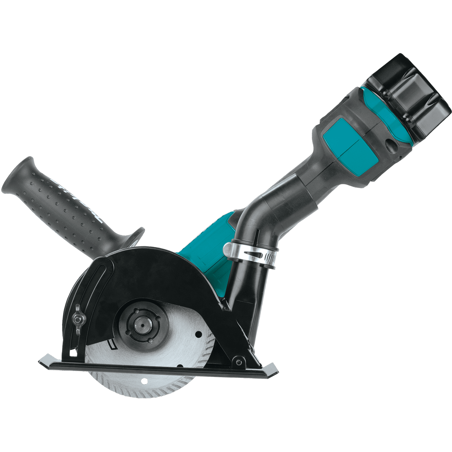 Easily adjustable depth setting; up to 7/8" cutting depth when used with a 5" cutting blade. Designed for dust extraction during cutting applications. Durable construction for longer life. Installs quickly and easily. For use with select Makita 4-1/2" and 5" Angle Grinders.