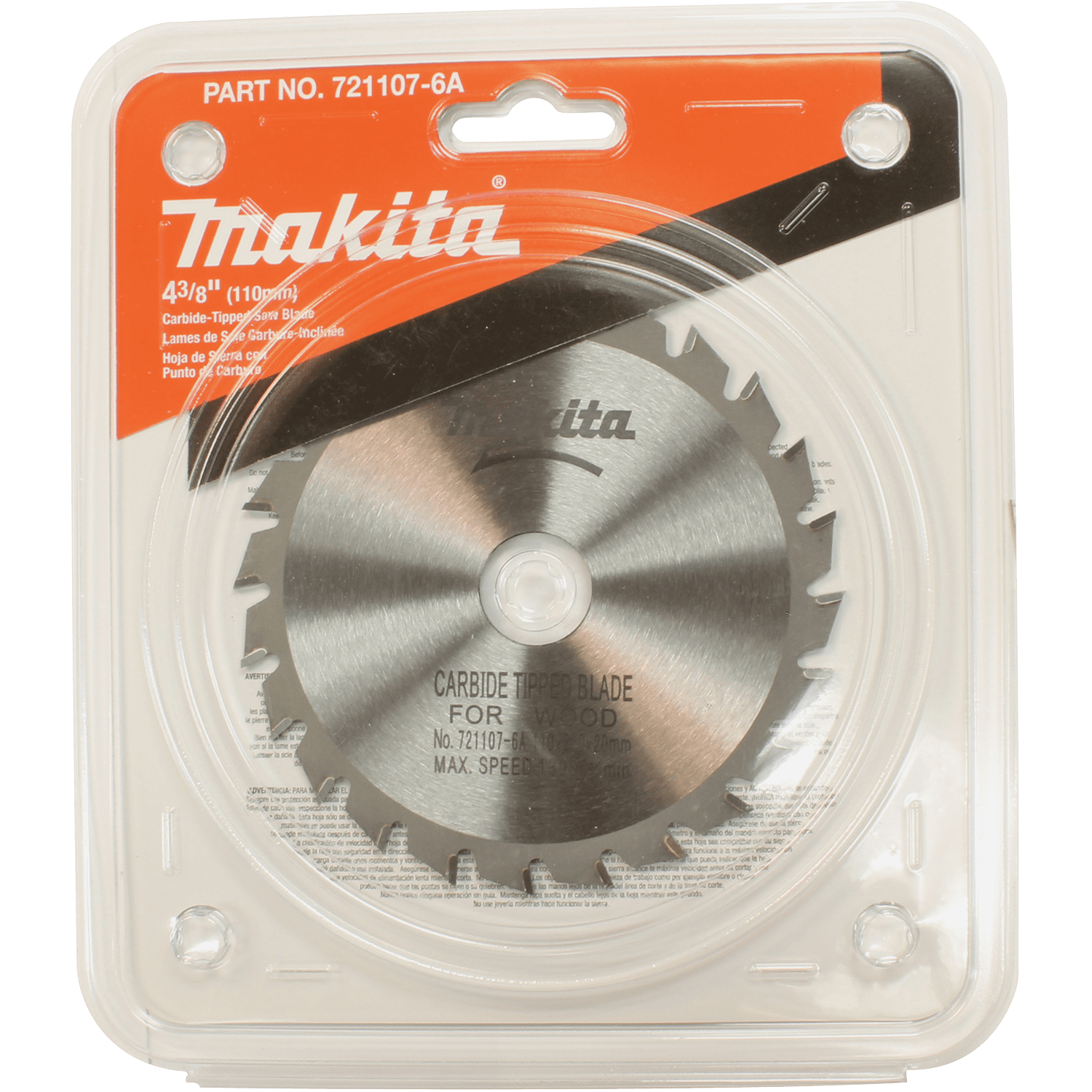 The Makita 4-3/8" 24 Tooth Carbide-Tipped Circular Saw Blade is expertly tensioned for true cuts. The blade features a carbide tooth design for quality cuts and longer life. For use with Makita 4200NH circular saw. Fully hardened and expertly hand-tensioned steel saw plates for true cuts. 24 tooth design for making cleaner cuts. Carbide tooth design for quality cuts and longer life. For use with Makita Circular Saw model 4200NH.