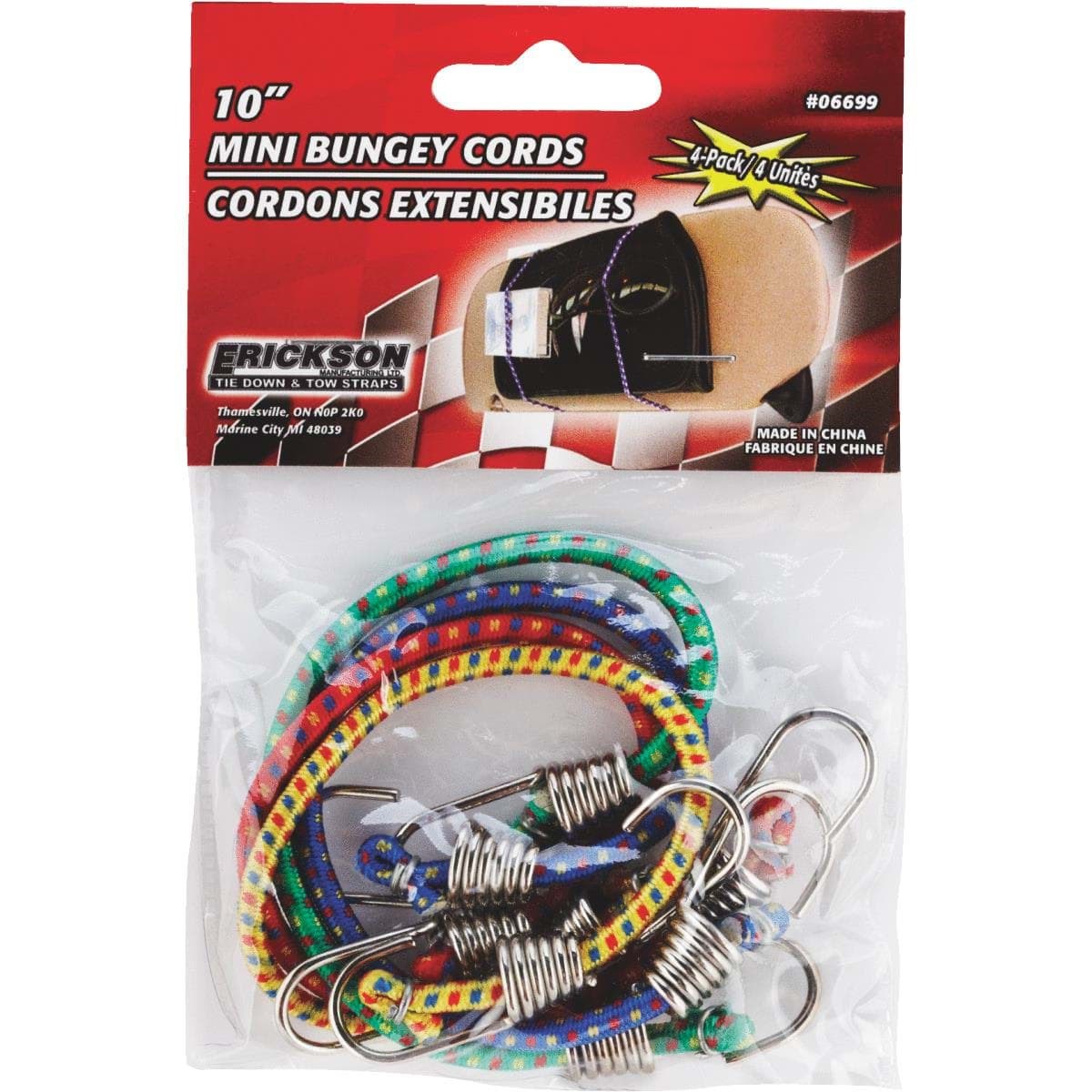 Mini stretch cord with zinc plated hooks. 10" x 4mm.