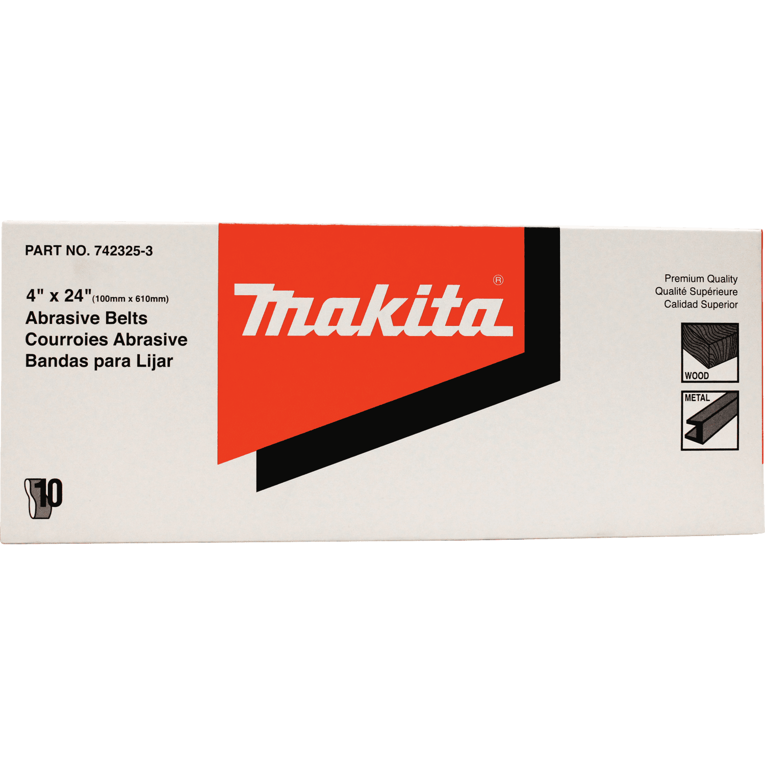 Makita abrasive belts feature a heavyweight backing pad for increased life and more efficient sanding. The versatile aluminum-oxide grain abrasive makes these belts ideal for a variety of materials including wood and metal. These Makita abrasive belts make quick work of removing material including paint. High quality aluminum-oxide grain abrasive for increased durability and sharpness. Open-coat grain distribution and resin glue coating reduces grain clogging and improves finish on wood surfaces. Heavyweight backing reduces edge tear-out for more sanding. Ideal for quick removal of material in large sections of wood and metal. For use with Makita 4" x 24" Belt Sander.