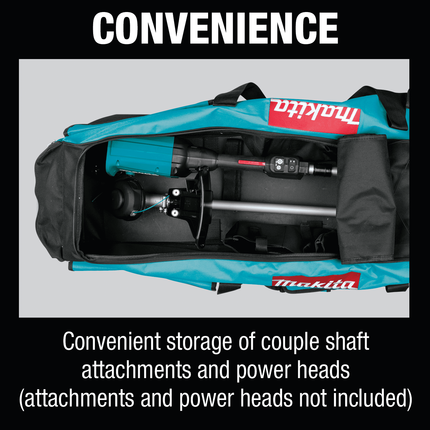 Keep your Makita couple shaft system organized and at-the-ready with the Makita 46” Contractor Tool Bag. It’s made of durable materials, with double wall construction for long service life. There are 5 exterior pockets and a large interior with 2 interior pockets for storing small items. The Bag is designed to hold a Makita 18V X2 LXT (36V) Brushless Cordless Couple Shaft Power Head (XUX01Z) and couple shaft attachments (power head and attachments sold separately). Convenient storage for tools and accessories. Made of durable materials with double wall construction for long life. Large interior for storing items. 5 exterior pockets and 2 interior pockets for storing smaller items. Convenient carrying handle with padded grip. 46" x 13" x 12" (L x W x H). Designed to hold Makita XUX01Z 18V X2 LXT® Lithium-Ion (36V) Brushless Cordless Couple Shaft Power Head and couple shaft attachments.