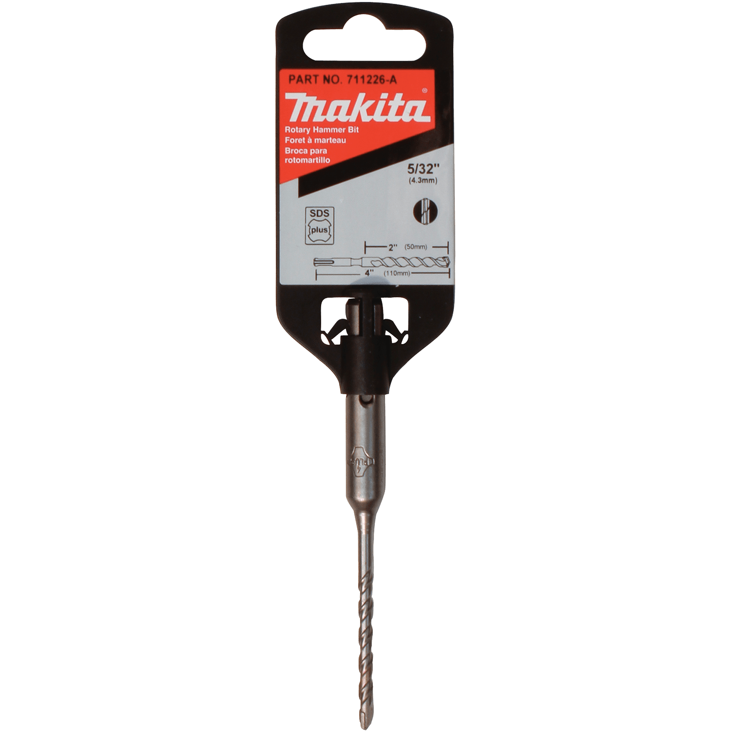 Makita Thruster Style bits are designed with a special carbide tip that penetrates on contact. The advanced flute design makes for faster dust removal and reduced vibration. These bits are designed for drilling holes in a variety of masonry materials including concrete. Thruster® Style carbide tip penetrates on contact and plows through rebar. Reinforced flute engineered for reduced vibration and faster dust removal. Dynamic chisel shaped head engineered to keep bit in contact with the material during drilling for faster penetration. Rebar chamfers help keep carbide from chipping. Self-centering tip is ideal for spot drilling. For drilling holes in a variety of masonry materials including concrete. 2" usable length. For use with rotary hammers that accept bits with SDS-PLUS shanks.