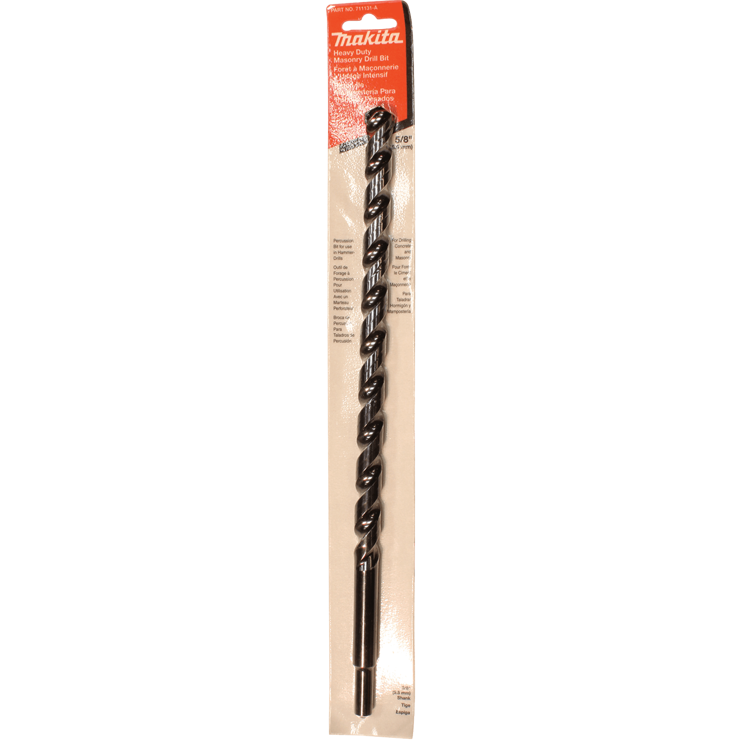 Makita Percussion Masonry Bits are designed to work with corded and cordless hammer drills for drilling holes in brick and other masonry materials. Each bit features carbide tips for added durability and long life. The wide flutes removal debris quicker for improved drilling efficiency. Carbide tipped for long life. Wide flutes for rapid dust removal. Re-sharpenable for extended life. Ideal for drilling holes in masonry materials including brick. For use with hammer drills.