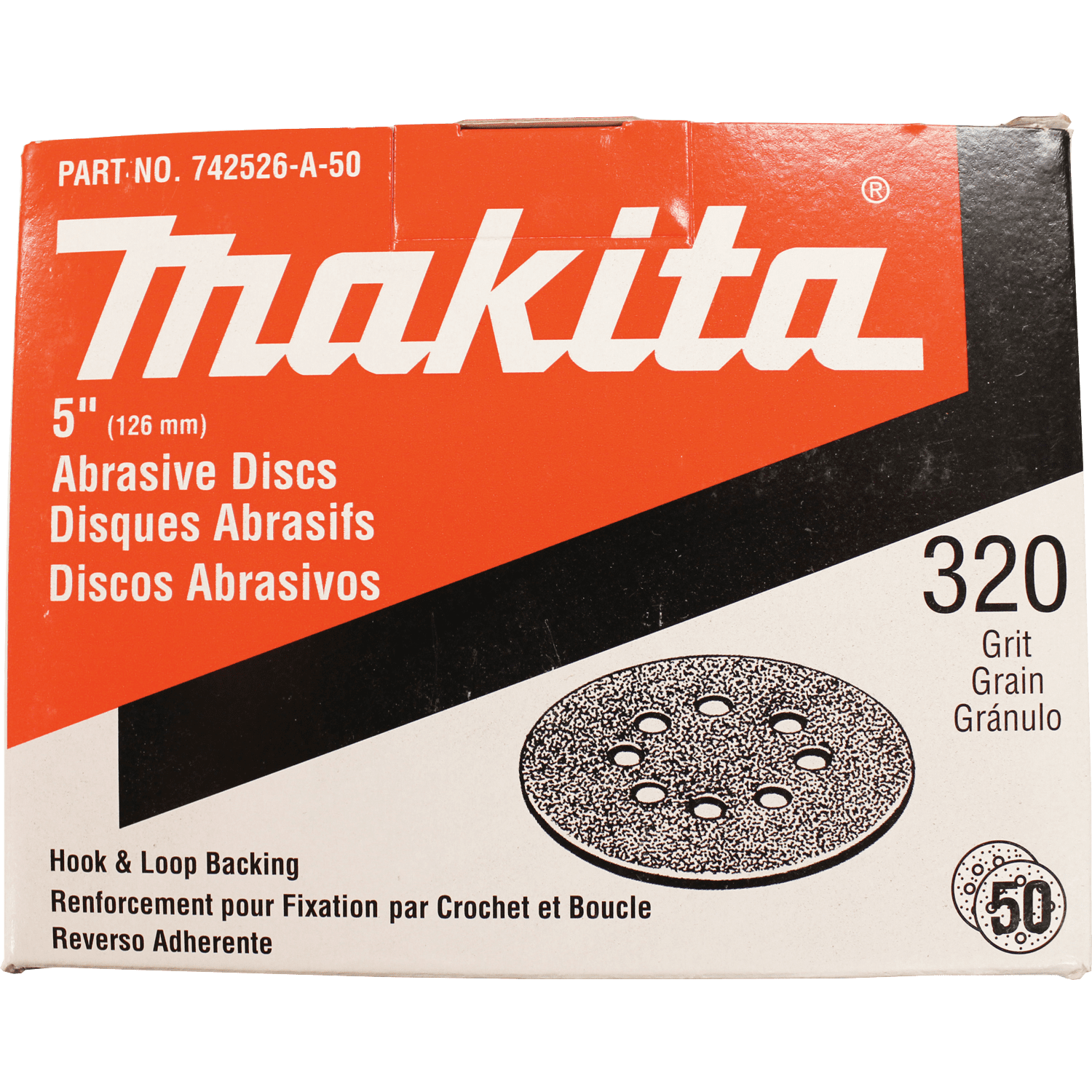 Each disc is heat and moisture resistant due to a double resin binder. The strong backing is resistant to delaminating and tearing. Open coated grain distribution combined with calcium stearate coating enables the abrasive to avoid clogging thereby extending the life of the paper and achieving an excellent surface finish. Makita discs are ideal for a wide range of applications including: wood, paint removal, varnish, fillers, plastics and more. High-quality white aluminum oxide grain abrasive for increased durability and sharpness. Open-coat grain distribution and resin glue coating reduces grain clogging and improves finish on wood surfaces. Heavyweight paper provides strong backing and reduces edge tear-out for more sanding. Ideal for use on bare wood, paint, varnish, fillers, plastic and other materials. 8-Hole design fits most 5” Random Orbit Sanders.