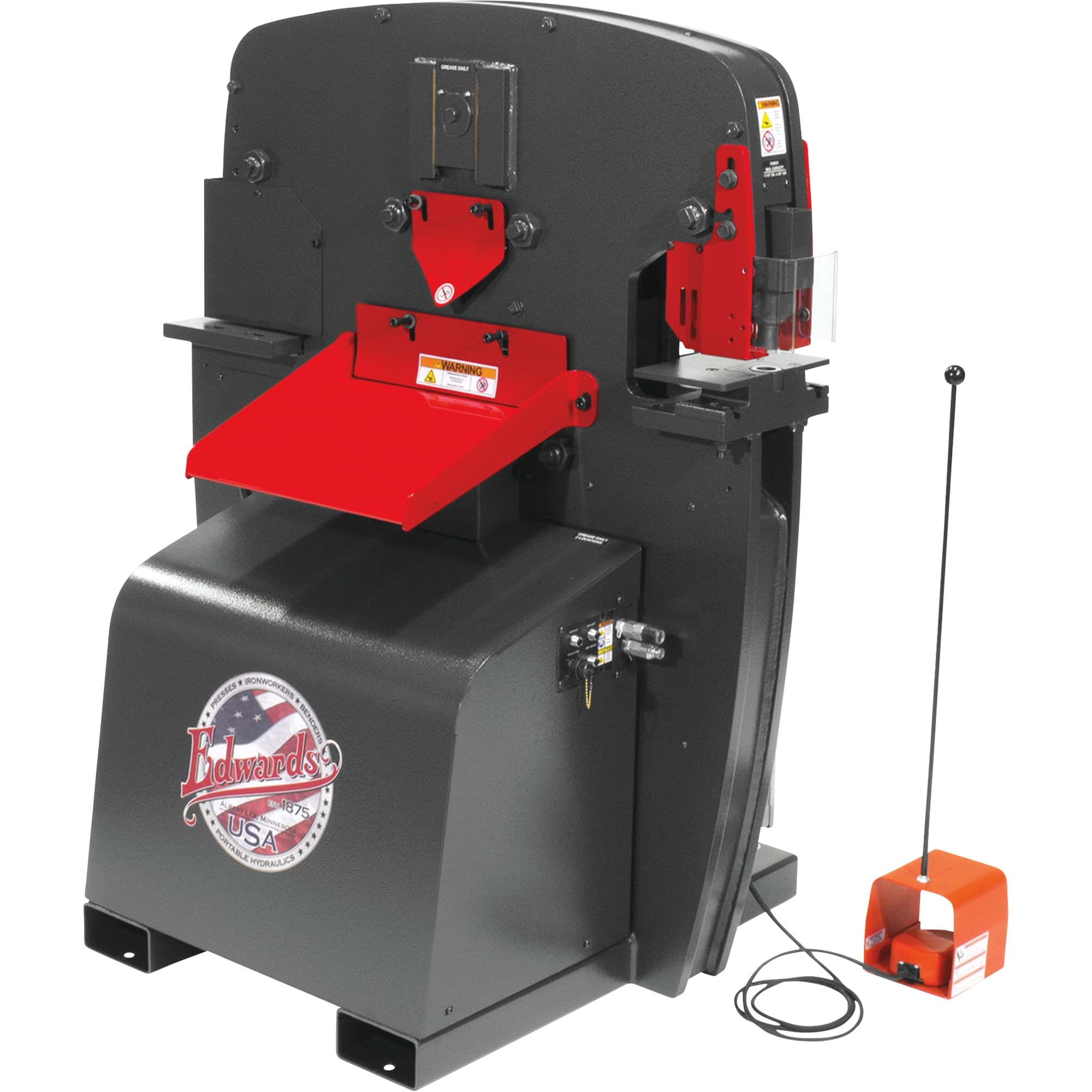 - Four Workstations: Standard (3) - Punch, Flat Bar Shear & Angle Shear; Open (1) - Customize your ironworker with 12 optional Attachments