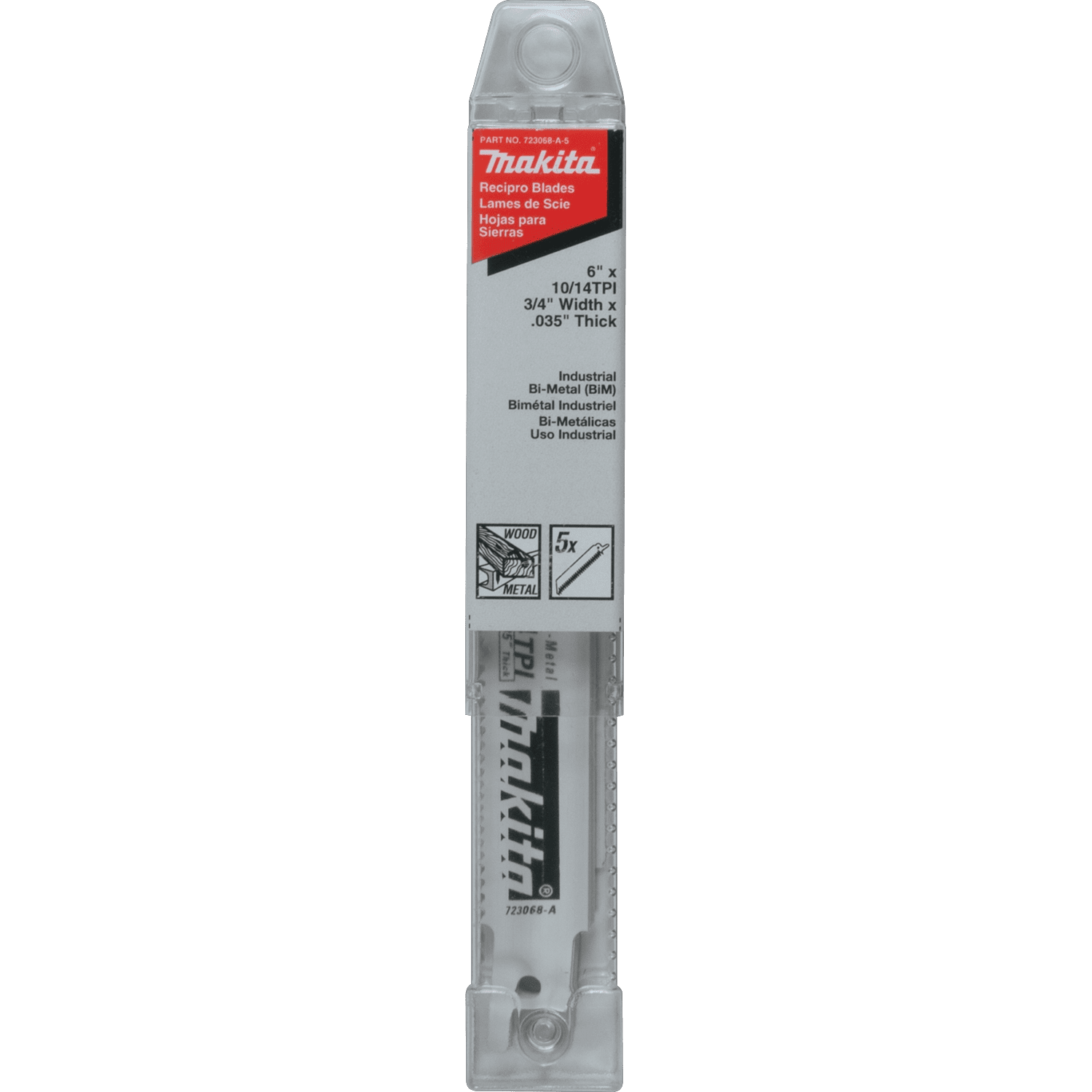 Makita All Purpose Reciprocating Saw Blades are made from high quality steel for clean cuts and longer life. They are designed to cut through a variety of materials including wood and metal. The blade features a 3/4" width for faster cutting. Bi-Metal construction lasts 10 times longer than HCS blades. First tooth consistently centered on each blade for straight plunge cuts. For making cuts in nail embedded wood, composition, metal and plastic. Convenient 5 pack.