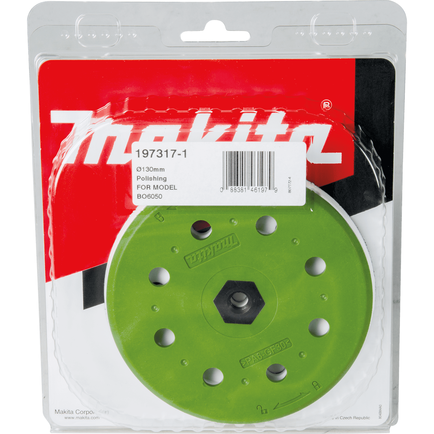 Makita Hard Polishing Pad for polishing surfaces. Made of high quality, durable rubber for long life. Hook & loop design for quick and easy pad changes. Hook & loop design for quick pad changes. Designed for polishing surfaces. Durable construction for long life. Use with 6" polishing pads. For use with Makita 6" Random Orbit Sander model BO6050J.