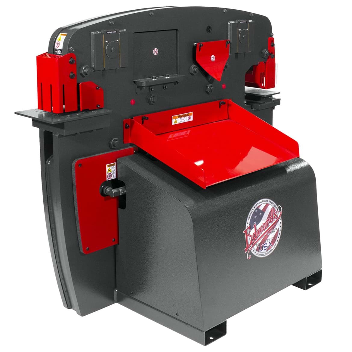 - Five Workstations: Standard (4) - Punch, Flat Bar Shear, Angle Shear & Coper Notcher ; Open Cavity (1) - Customize your ironworker with 4 optional Attachments - Brake, Rod Shear, Multi-Shear & Pipe Notcher