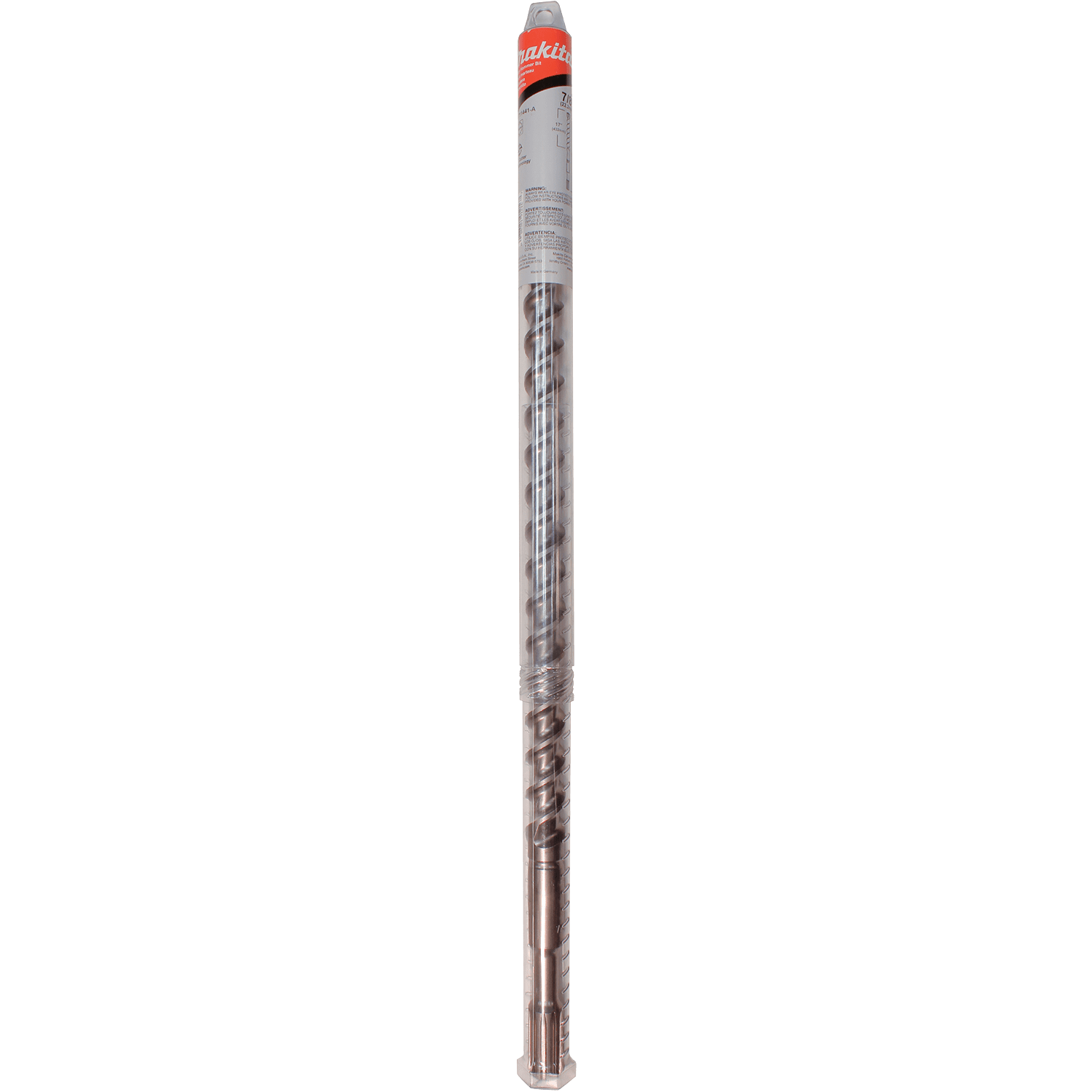 Makita 4-Cutter Spline Bit is designed to work with Rotary Hammers that accept Spline shank bits to drill holes in concrete. The 4-cutter technology combines with the central guiding action for efficientand accurate drilling. The high quality steel and special impact grade carbide make for added durability and long life. 4-cutter technology for reduced friction and rapid dust removal. Central guiding action for accurate holes. Centering tip features a more aggressive design for faster hole starting. Engineered for reduced vibration. Wear marking on primary cutter indicates bit wear. Made of the highest quality chrome-nickel-molybdenum steel. For drilling holes in concrete; 17" usable length. For use with Rotary Hammers that accept Spline shank bits.