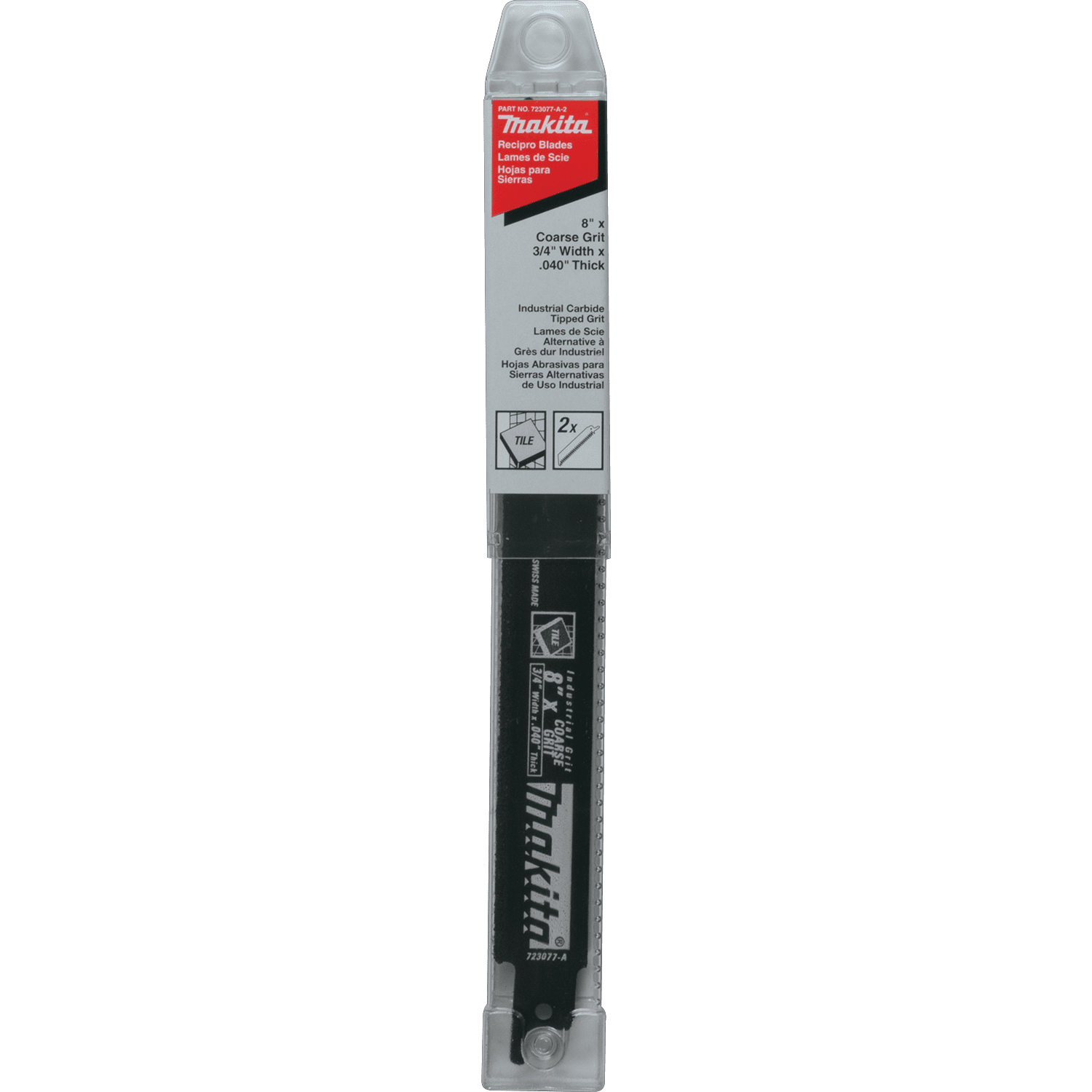 Makita Tungsten Carbide Grit reciprocating saw blade is engineered to cut through a variety materials including brick and tile. The bi-metal construction provides added durability. The coarse grit makes for faster cutting. Tungsten carbide grit coated cutting edge for added versatility and durability. Bi-Metal construction lasts 10 times longer than HCS blades. Ideal for making cuts in brick, tile, marble, stone, chalkboard, cast iron pipe, melamine, veneer & fiberglass. Convenient 2 pack.