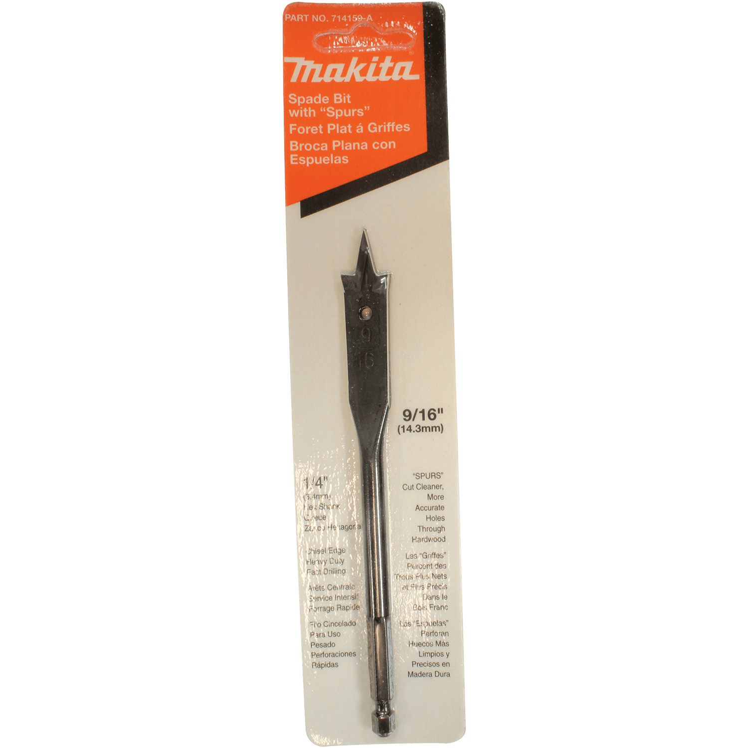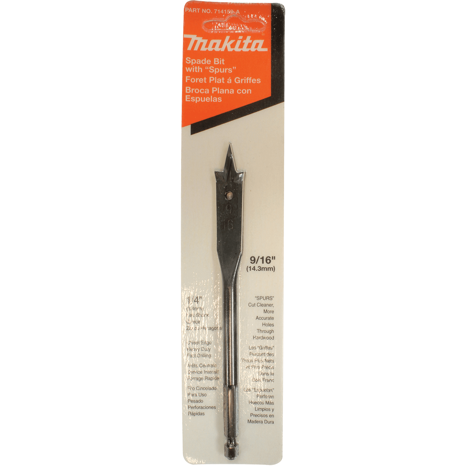 Makita Heavy Duty Spade Bit features "spurs" that cut cleaner holes in wood. Durable construction allows the Bit to hold up to the heaviest of applications. The versatile 1/4" hex shank allows the Bit to easily be used in both Impact Drivers and Driver-Drills. The aggressive chisel edge means faster, more accurate drilling. Designed with "Spurs" for cleaner cuts and more accurate holes in hardwood. The chisel edge design is more positively angled and digs into the wood. Made from durable, high strength steel for long lasting performance under heavy demands. Ideal for rough boring through wood. 1/4" hex shank works directly with Impact Drivers and Driver-Drills.